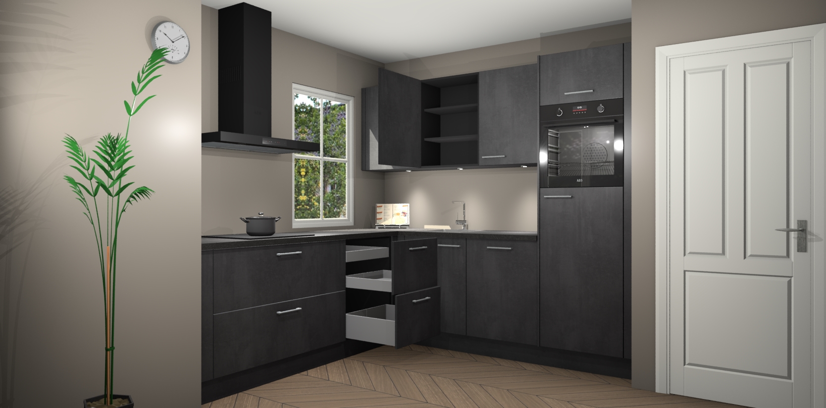 De beton zwarte Leeds bevat vijf essentiële inbouwapparaten - een oven, inductiekookplaat, afzuigkap, vaatwasser en koelkast - zodat u er na levering meteen in kunt. Voor de slimme kopers die weten dat apparaten vaak het verschil kunnen maken tussen functioneel en luxueus, bieden we eenvoudige upgradeopties naar AEG, van oven naar combimagnetron na bestelling of naar een kookplaat met geïntrigeerde afzuiging. En met onze vaste lage prijs en snelle levering binnen zeven weken vanaf de orderbevestiging hoeft u zich geen zorgen te maken over verborgen kosten of lange levertijden die uw droomkeuken kunnen vertragen.