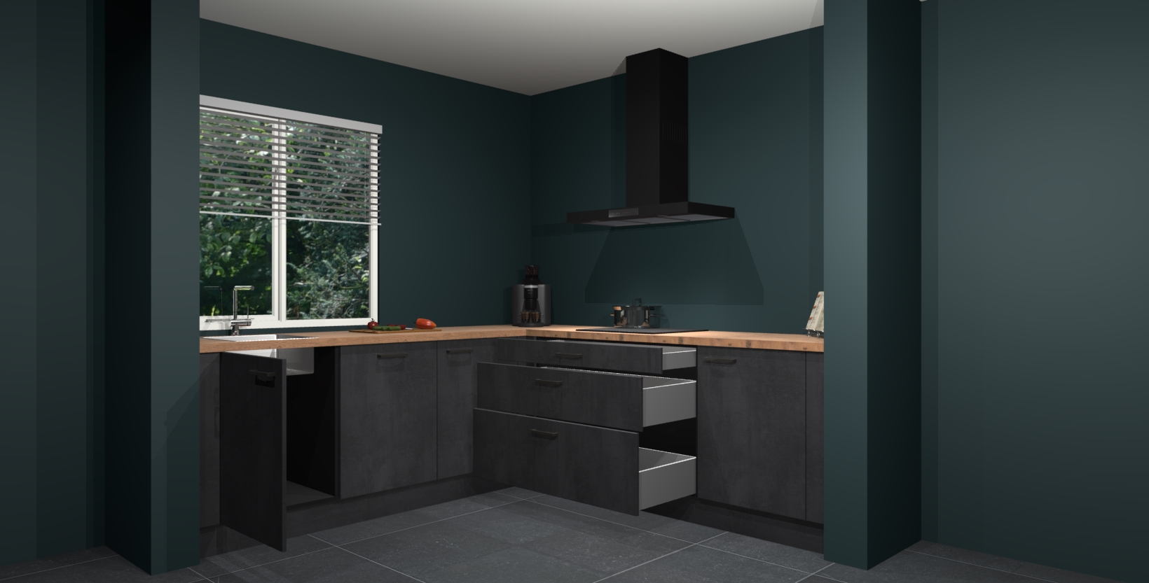Wij presenteren de revolutie in keukens: de beton zwarte keuken Letland. Met modern design, een tijdloos uiterlijk en kasten die al voor gemonteerd worden geleverd, laat deze stijlvolle keuken uw kookervaring op een hele nieuwe manier transformeren.