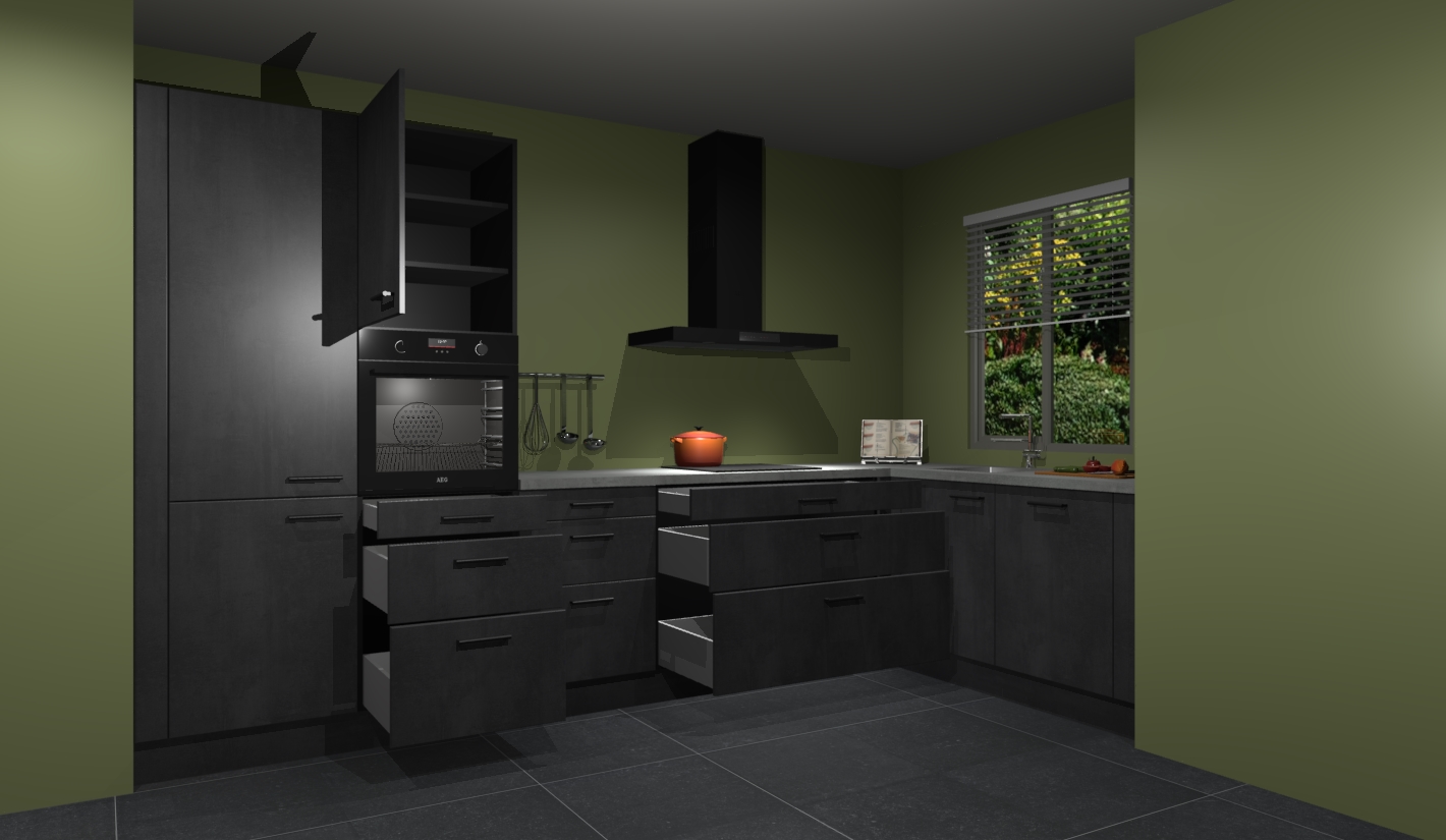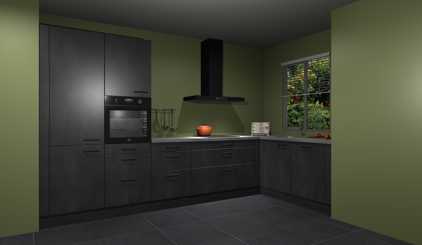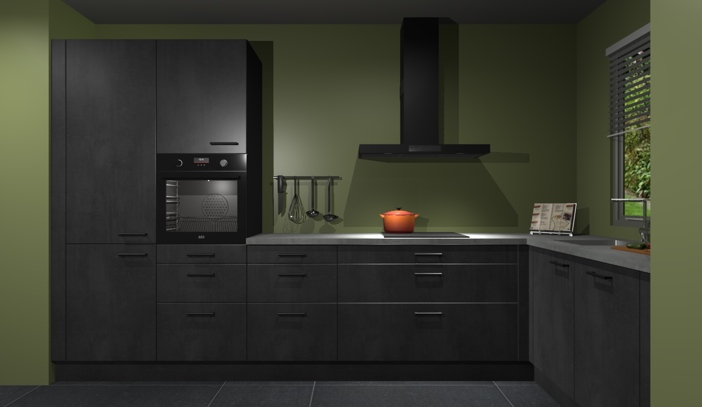 Welkom bij de Beton zwarte keuken Liberia. Deze prachtige keuken zal de komende jaren het middelpunt van de belangstelling in uw huis zijn. Uitgerust met vijf inbouwapparaten komt u nooit kookgereedschap tekort. Bovendien geeft de warme houtlook elke ruimte een uitnodigende en tijdloze uitstraling.