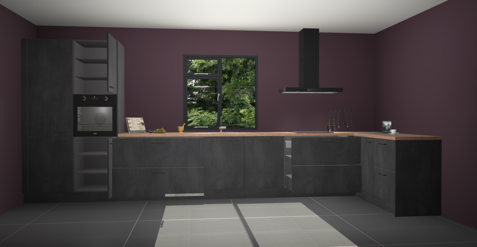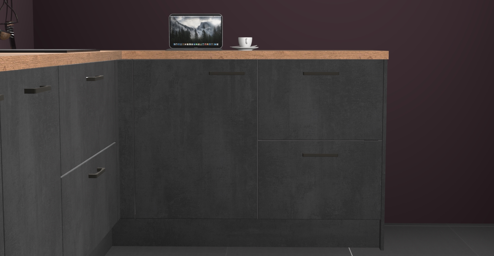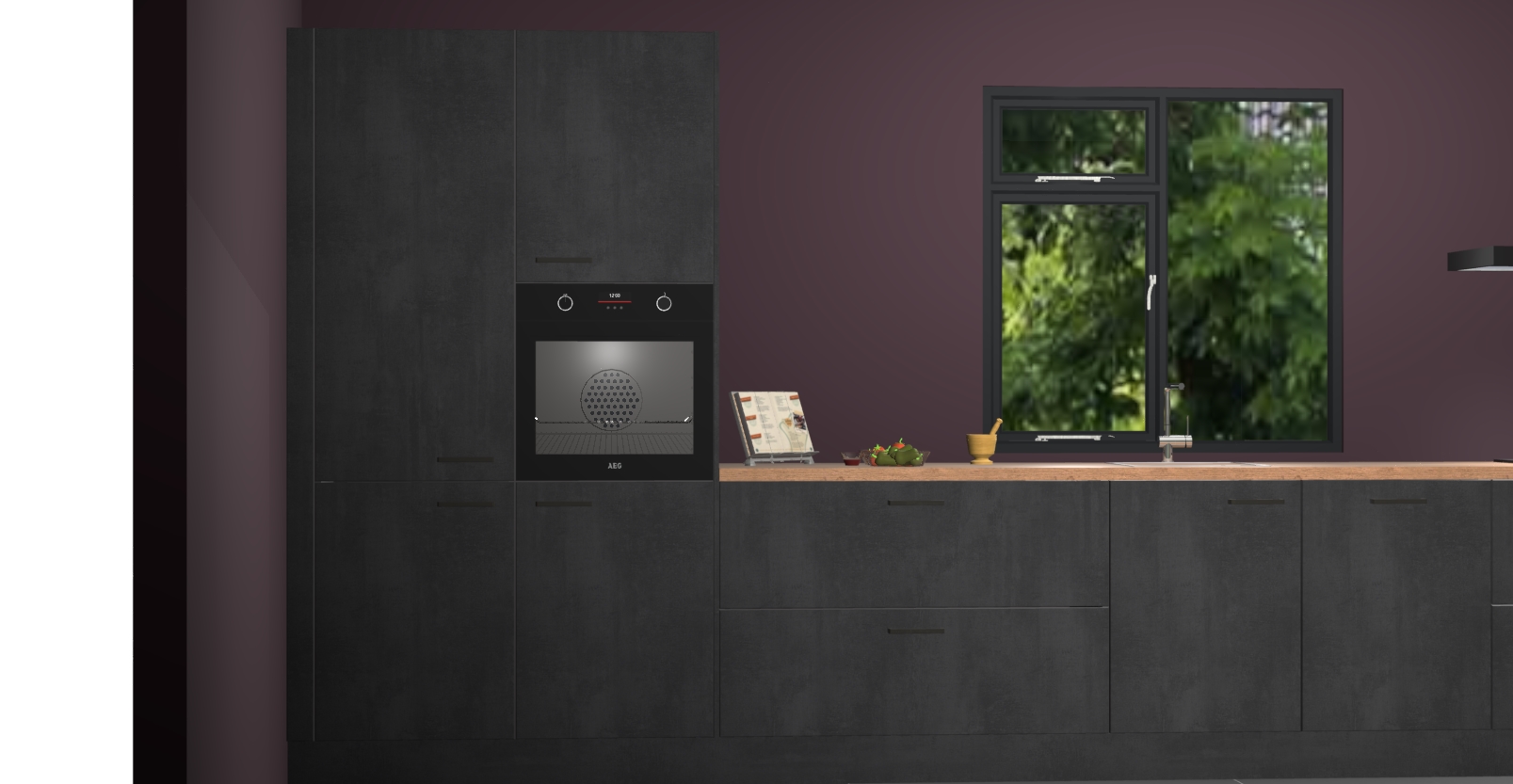 De Beton zwarte keuken Lille wordt geleverd met vijf inbouwapparaten - een oven, inductiekookplaat, afzuigkap, vaatwasser en koelkast. Maar dat is nog niet alles! Na bestelling kunnen deze apparaten eenvoudig worden geüpgraded naar premium AEG-apparatuur. Bovendien is er zelfs de optie om de oven te vervangen door een combimagnetron of uw inductiekookplaat te vervangen door een kookplaat met geïntegreerde afzuiging.