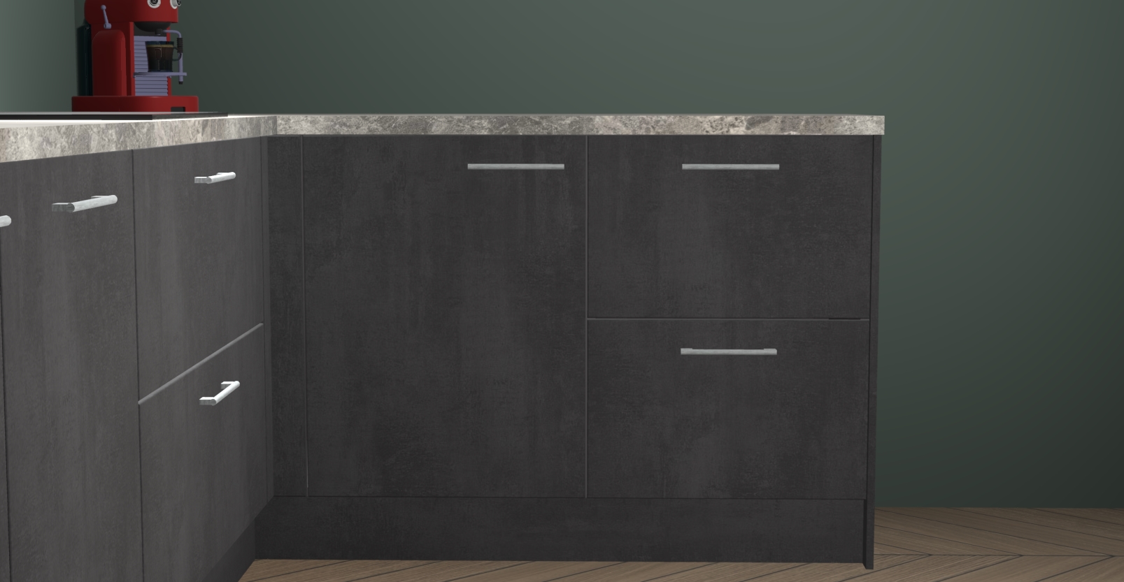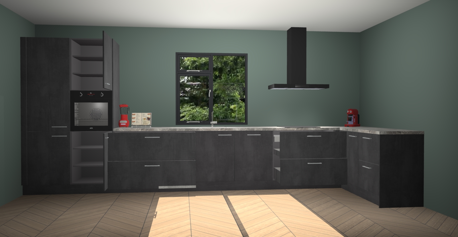 De Beton zwarte keuken Lille wordt geleverd met vijf inbouwapparaten - een oven, inductiekookplaat, afzuigkap, vaatwasser en koelkast. Maar dat is nog niet alles! Na bestelling kunnen deze apparaten eenvoudig worden geüpgraded naar premium AEG-apparatuur. Bovendien is er zelfs de optie om de oven te vervangen door een combimagnetron of uw inductiekookplaat te vervangen door een kookplaat met geïntegreerde afzuiging.