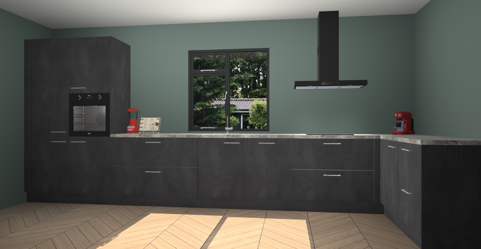 Wilt u uw keuken upgraden en de perfecte moderne toets geven? Kijk dan niet verder dan de Beton zwarte keuken Lille. Deze mega moderne keuken straalt warmte en sfeer uit en is daarmee de perfecte aanvulling voor elke ruimte.