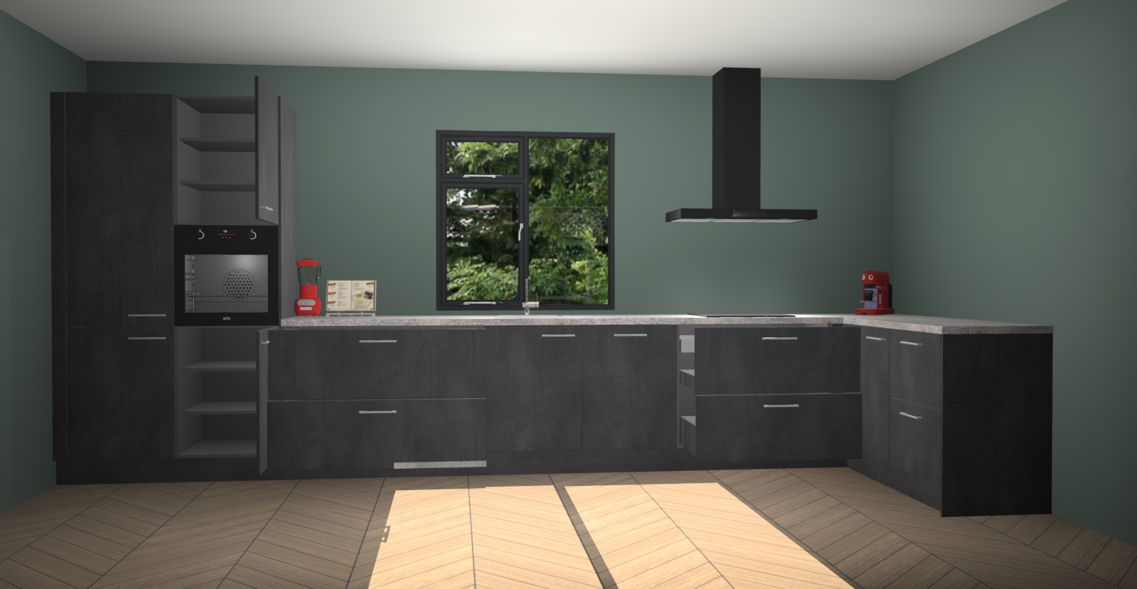 Wilt u uw keuken upgraden en de perfecte moderne toets geven? Kijk dan niet verder dan de Beton zwarte keuken Lille. Deze mega moderne keuken straalt warmte en sfeer uit en is daarmee de perfecte aanvulling voor elke ruimte.