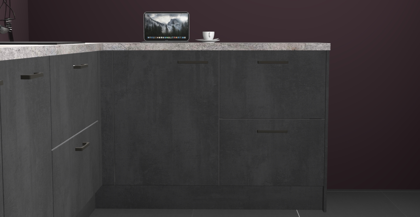 De Beton zwarte keuken Lille wordt geleverd met vijf inbouwapparaten - een oven, inductiekookplaat, afzuigkap, vaatwasser en koelkast. Maar dat is nog niet alles! Na bestelling kunnen deze apparaten eenvoudig worden geüpgraded naar premium AEG-apparatuur. Bovendien is er zelfs de optie om de oven te vervangen door een combimagnetron of uw inductiekookplaat te vervangen door een kookplaat met geïntegreerde afzuiging.