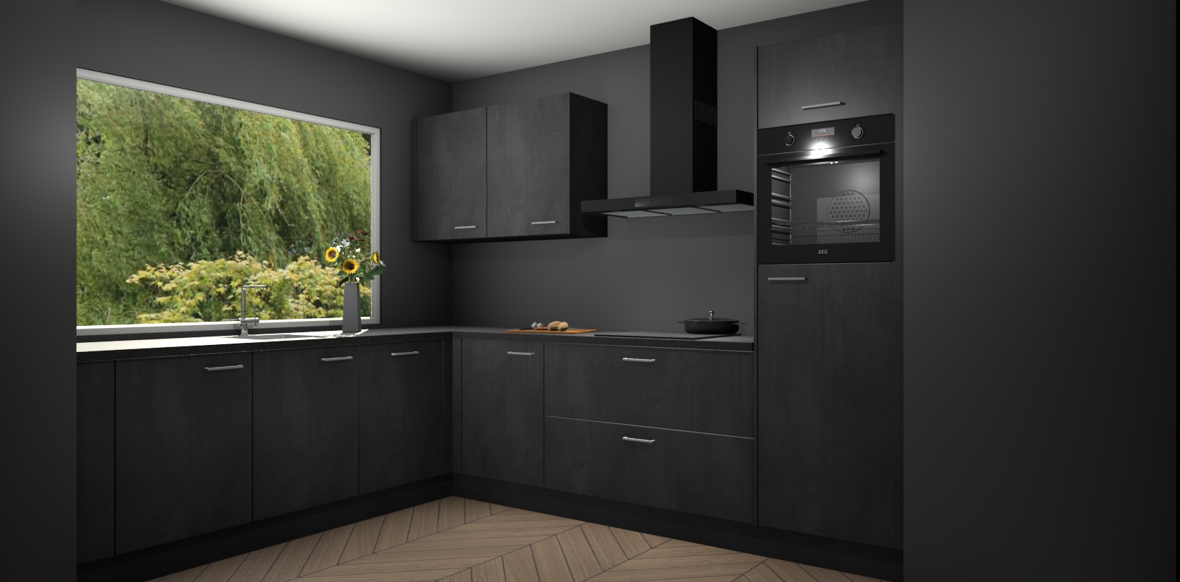 Bent u op zoek naar een onberispelijk keukenontwerp dat Duitse precisie en uitmuntende architectuur ademt? Zoek niet verder - de beton zwarte