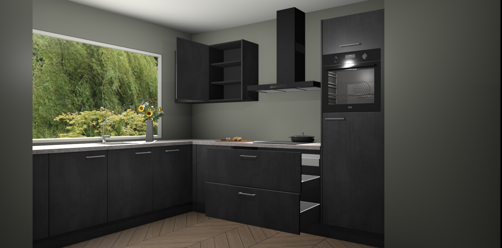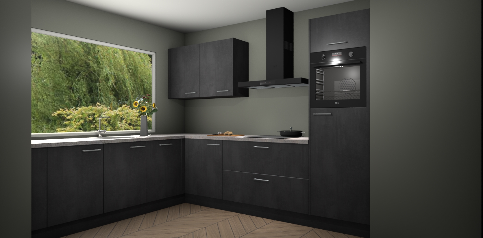 Bent u op zoek naar een onberispelijk keukenontwerp dat Duitse precisie en uitmuntende architectuur ademt? Zoek niet verder - de beton zwarte