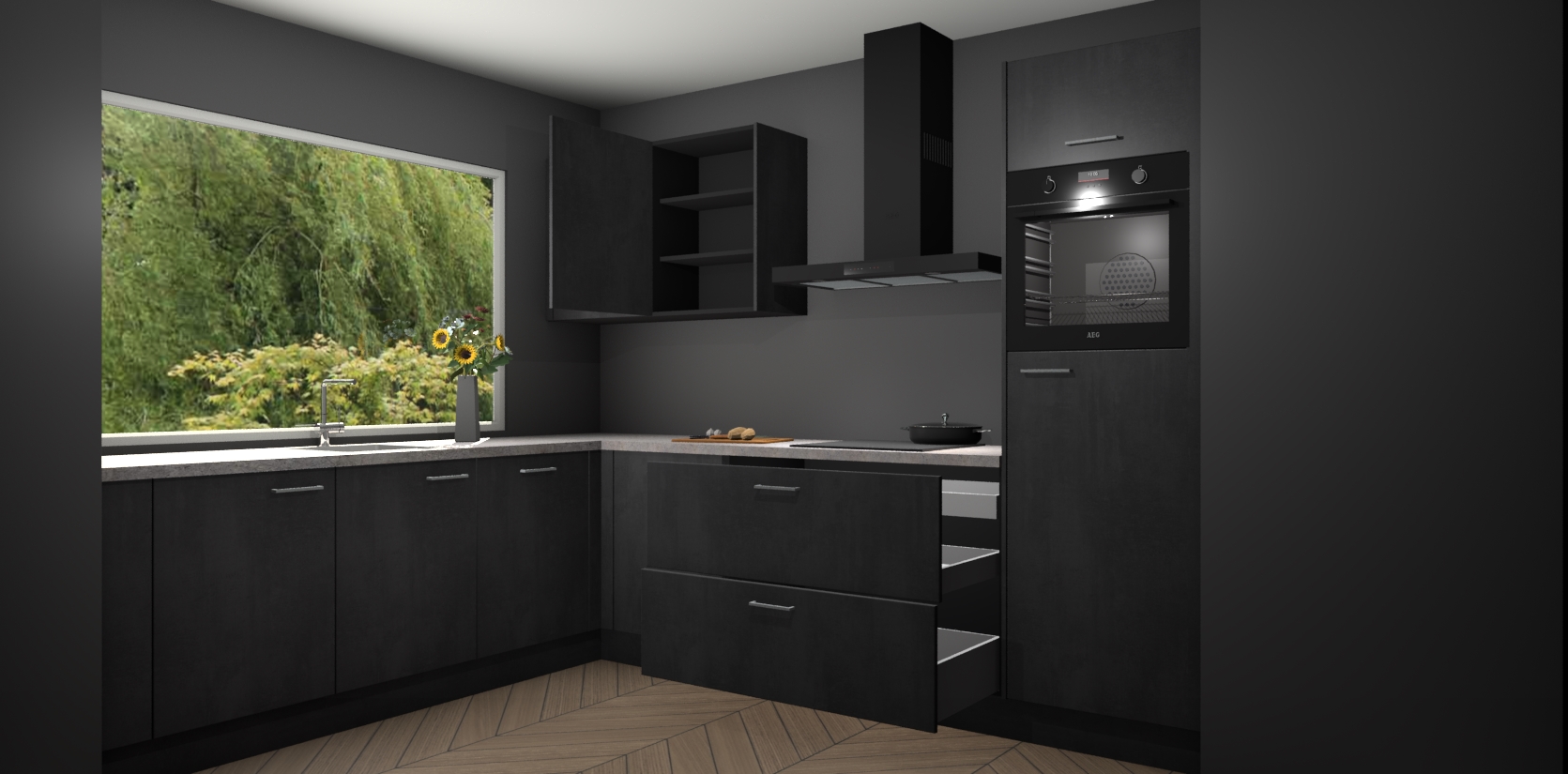 Bent u op zoek naar een onberispelijk keukenontwerp dat Duitse precisie en uitmuntende architectuur ademt? Zoek niet verder - de beton zwarte