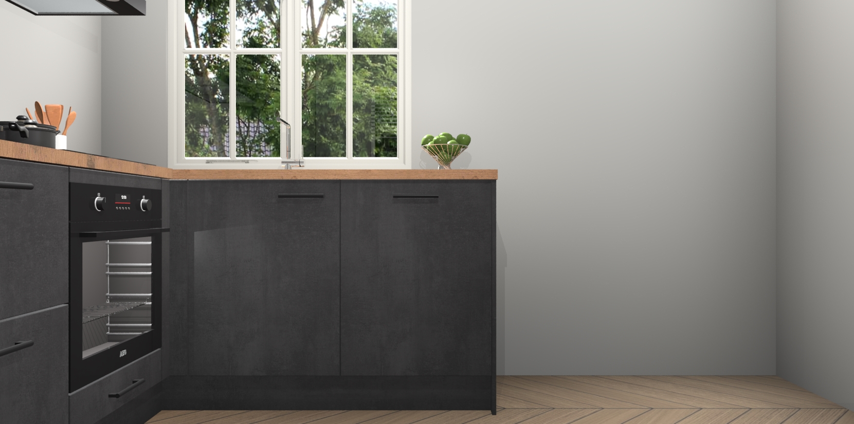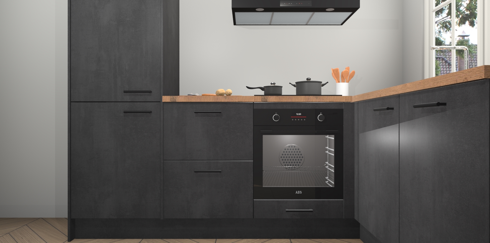 Met de Beton Zwarte keuken Linz krijgt u 5 op maat gemaakte apparaten: een oven, inductiekookplaat, afzuigkap, vaatwasser en koelkast die na bestelling makkelijk worden geüpgraded naar AEG-producten. Met de zacht sluitende deuren, bent u verzekerd van eenvoudige bediening in stilte. Het kastmeubilair wordt alvast pre-assemblage geleverd waardoor u sneller met het installeren begint. Ook zijn alle deuren voorzien van softclose zodat er geen sporen op de lade blijven als u ze dicht doet. Bovendien hoeft u bij ons geen twijfels of verassingen te hebben: we hebben een vaste lage prijs waardoor u weet wat u mag verwachten bij elke bestelling.