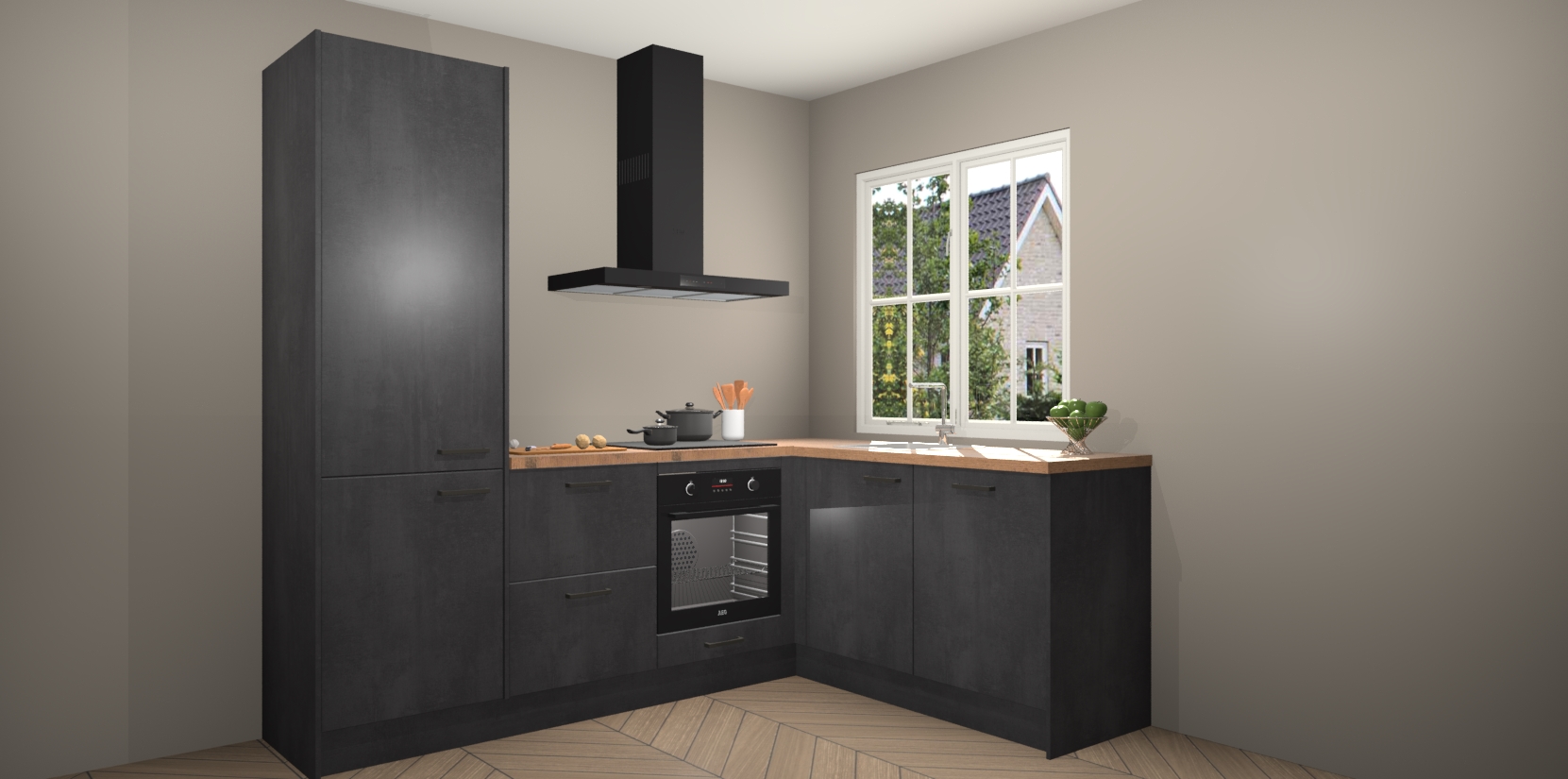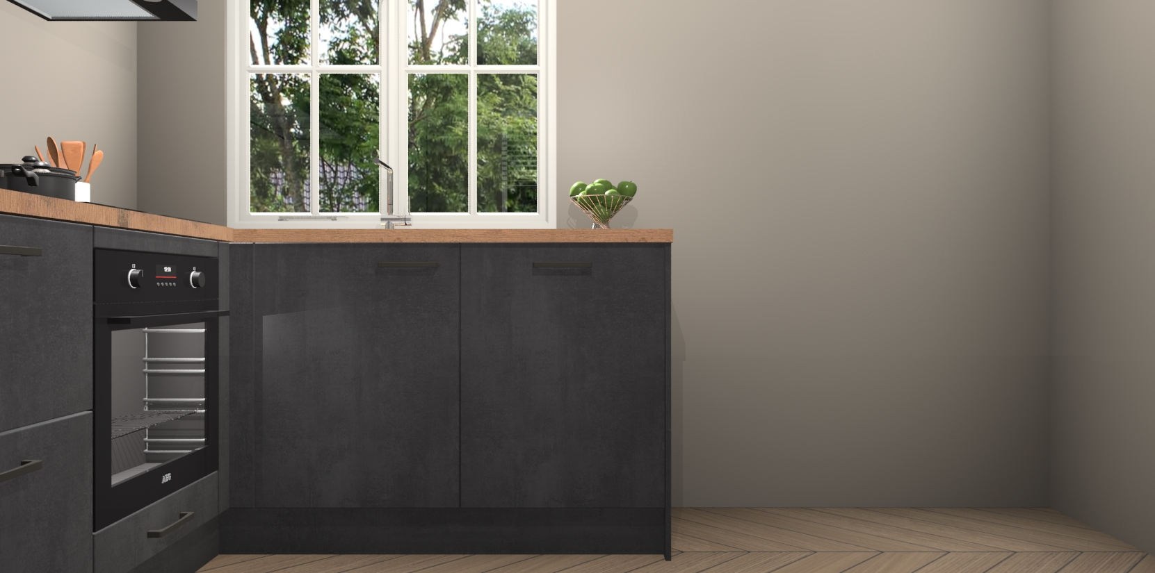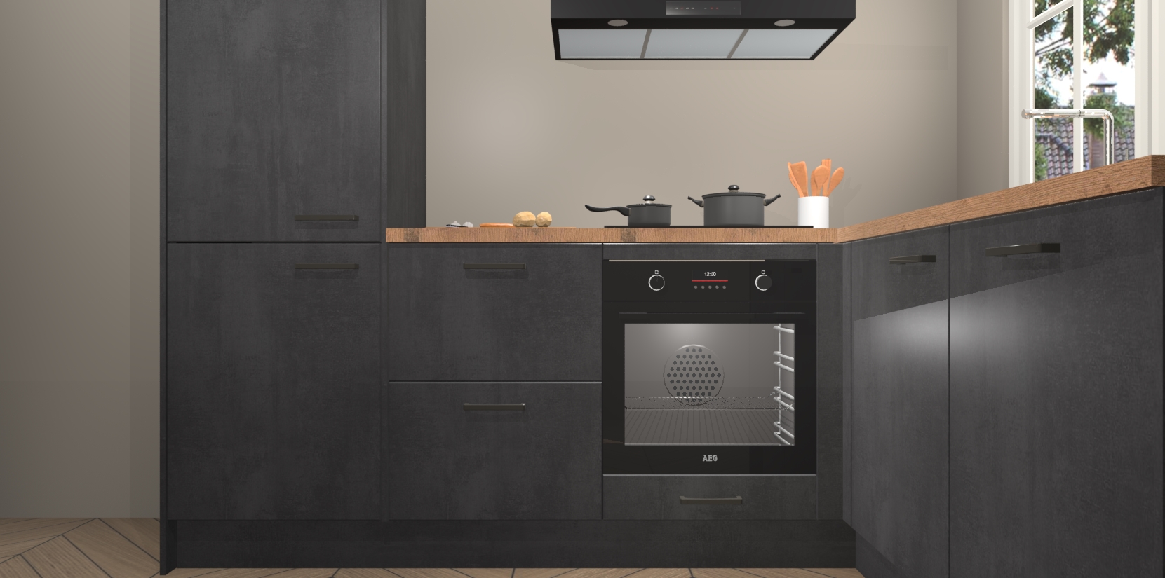 Met de Beton Zwarte keuken Linz krijgt u 5 op maat gemaakte apparaten: een oven, inductiekookplaat, afzuigkap, vaatwasser en koelkast die na bestelling makkelijk worden geüpgraded naar AEG-producten. Met de zacht sluitende deuren, bent u verzekerd van eenvoudige bediening in stilte. Het kastmeubilair wordt alvast pre-assemblage geleverd waardoor u sneller met het installeren begint. Ook zijn alle deuren voorzien van softclose zodat er geen sporen op de lade blijven als u ze dicht doet. Bovendien hoeft u bij ons geen twijfels of verassingen te hebben: we hebben een vaste lage prijs waardoor u weet wat u mag verwachten bij elke bestelling.