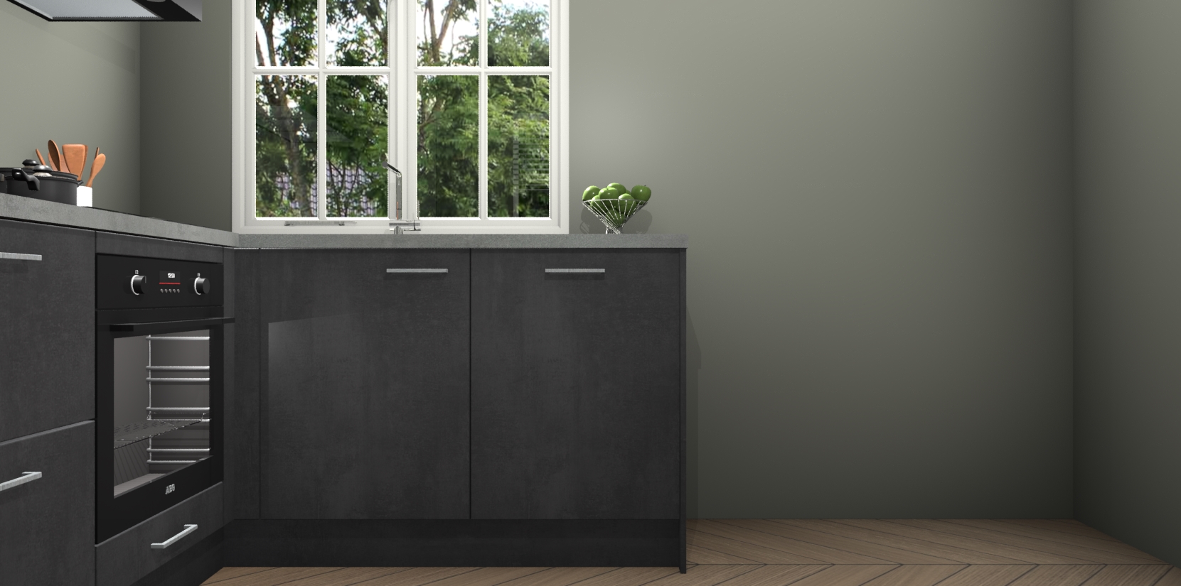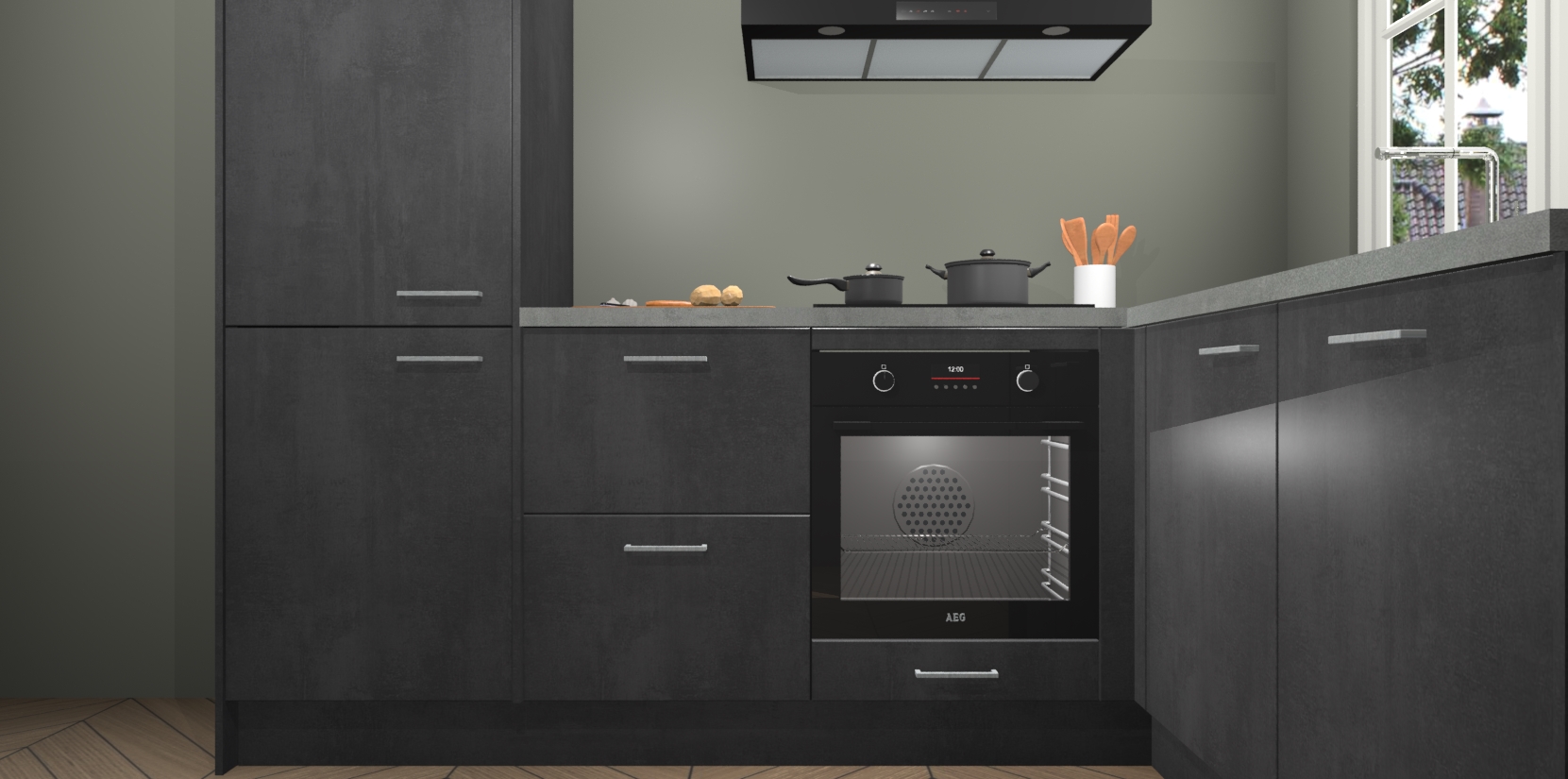 Met de Beton Zwarte keuken Linz krijgt u 5 op maat gemaakte apparaten: een oven, inductiekookplaat, afzuigkap, vaatwasser en koelkast die na bestelling makkelijk worden geüpgraded naar AEG-producten. Met de zacht sluitende deuren, bent u verzekerd van eenvoudige bediening in stilte. Het kastmeubilair wordt alvast pre-assemblage geleverd waardoor u sneller met het installeren begint. Ook zijn alle deuren voorzien van softclose zodat er geen sporen op de lade blijven als u ze dicht doet. Bovendien hoeft u bij ons geen twijfels of verassingen te hebben: we hebben een vaste lage prijs waardoor u weet wat u mag verwachten bij elke bestelling.