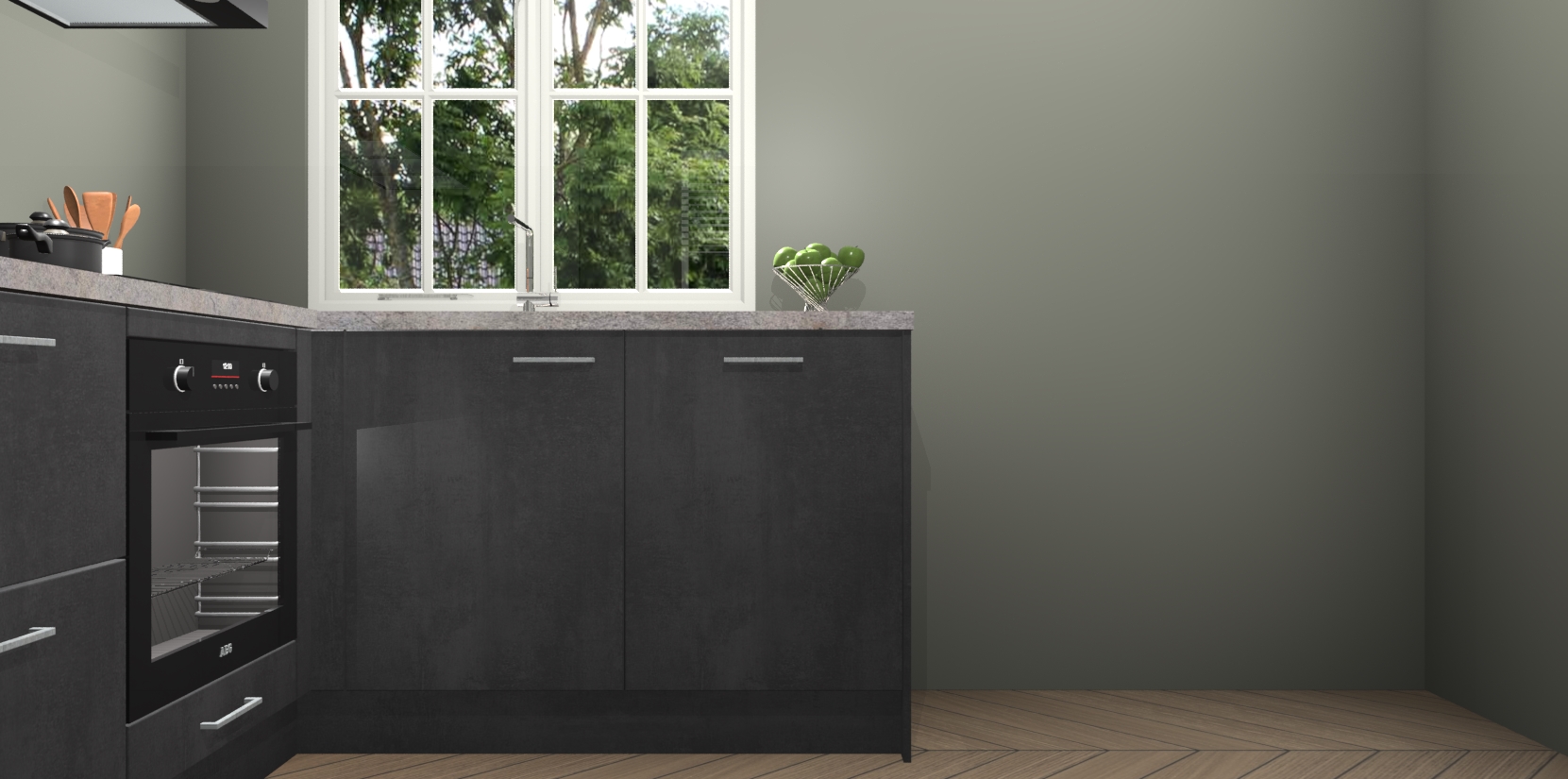 Met de Beton Zwarte keuken Linz krijgt u 5 op maat gemaakte apparaten: een oven, inductiekookplaat, afzuigkap, vaatwasser en koelkast die na bestelling makkelijk worden geüpgraded naar AEG-producten. Met de zacht sluitende deuren, bent u verzekerd van eenvoudige bediening in stilte. Het kastmeubilair wordt alvast pre-assemblage geleverd waardoor u sneller met het installeren begint. Ook zijn alle deuren voorzien van softclose zodat er geen sporen op de lade blijven als u ze dicht doet. Bovendien hoeft u bij ons geen twijfels of verassingen te hebben: we hebben een vaste lage prijs waardoor u weet wat u mag verwachten bij elke bestelling.
