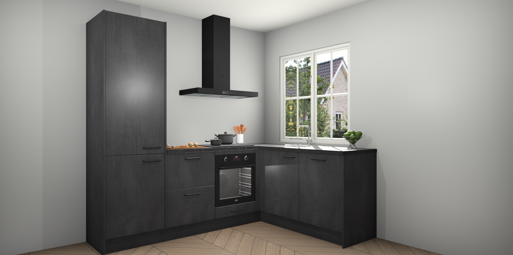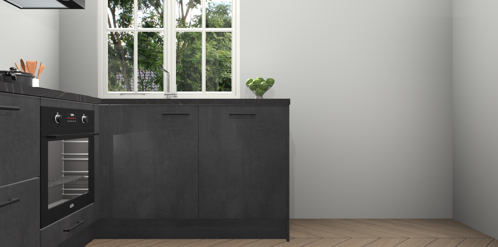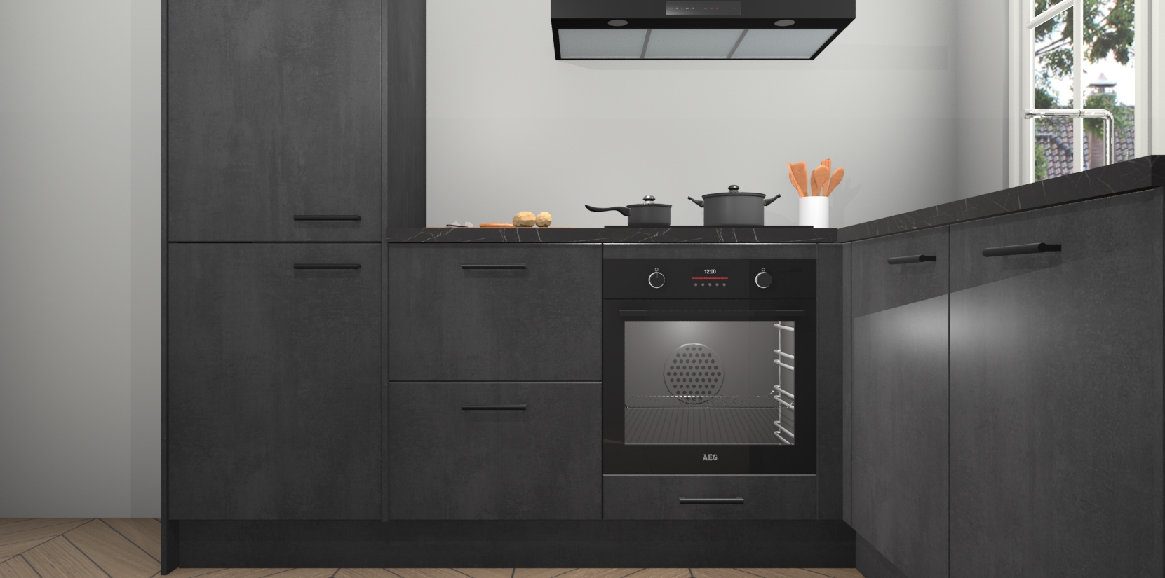 Met de Beton Zwarte keuken Linz krijgt u 5 op maat gemaakte apparaten: een oven, inductiekookplaat, afzuigkap, vaatwasser en koelkast die na bestelling makkelijk worden geüpgraded naar AEG-producten. Met de zacht sluitende deuren, bent u verzekerd van eenvoudige bediening in stilte. Het kastmeubilair wordt alvast pre-assemblage geleverd waardoor u sneller met het installeren begint. Ook zijn alle deuren voorzien van softclose zodat er geen sporen op de lade blijven als u ze dicht doet. Bovendien hoeft u bij ons geen twijfels of verassingen te hebben: we hebben een vaste lage prijs waardoor u weet wat u mag verwachten bij elke bestelling.