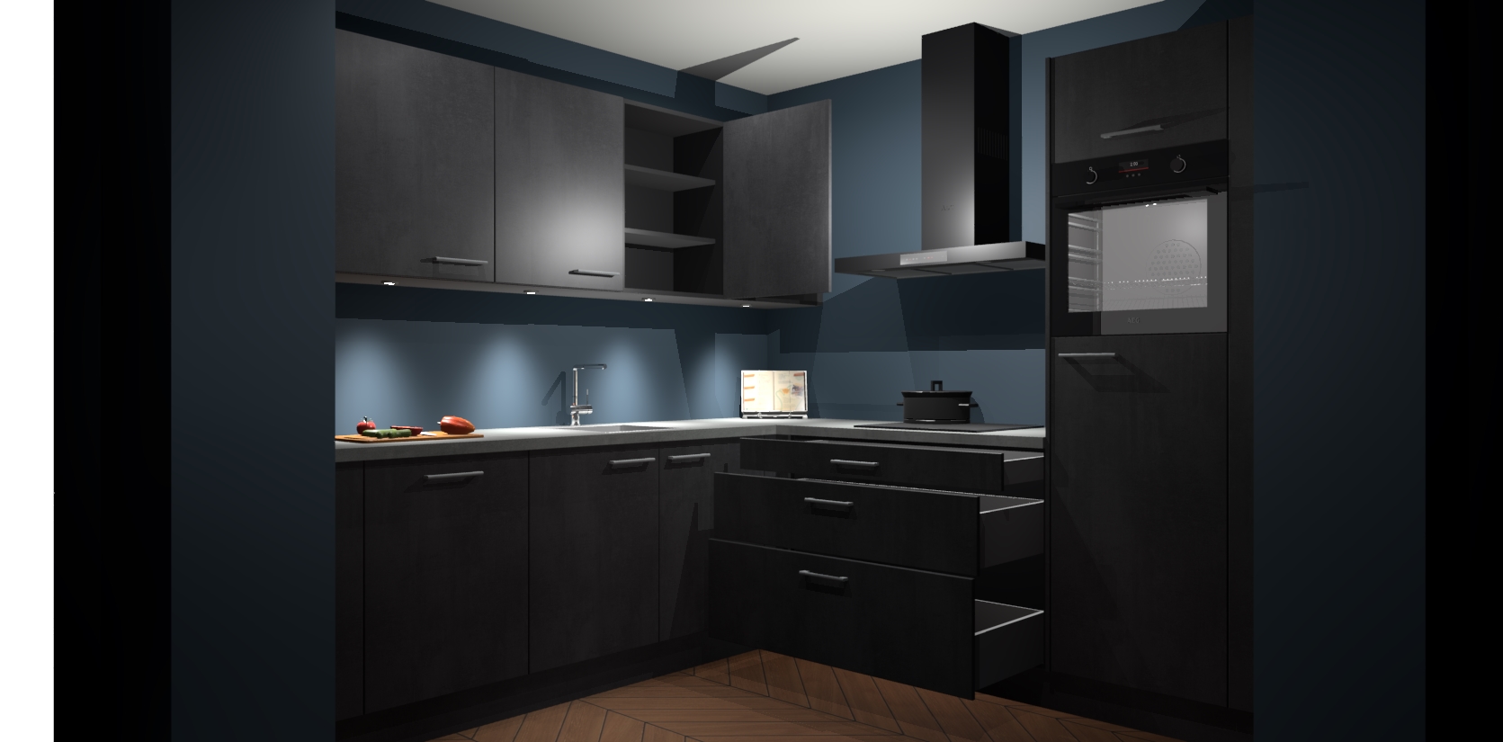 Wij presenteren de revolutie in keukens: de Beton Zwarte keuken Luanda. Met modern design, een tijdloos uiterlijk en kasten die al voor gemonteerd worden geleverd, laat deze stijlvolle keuken uw kookervaring op een hele nieuwe manier transformeren.