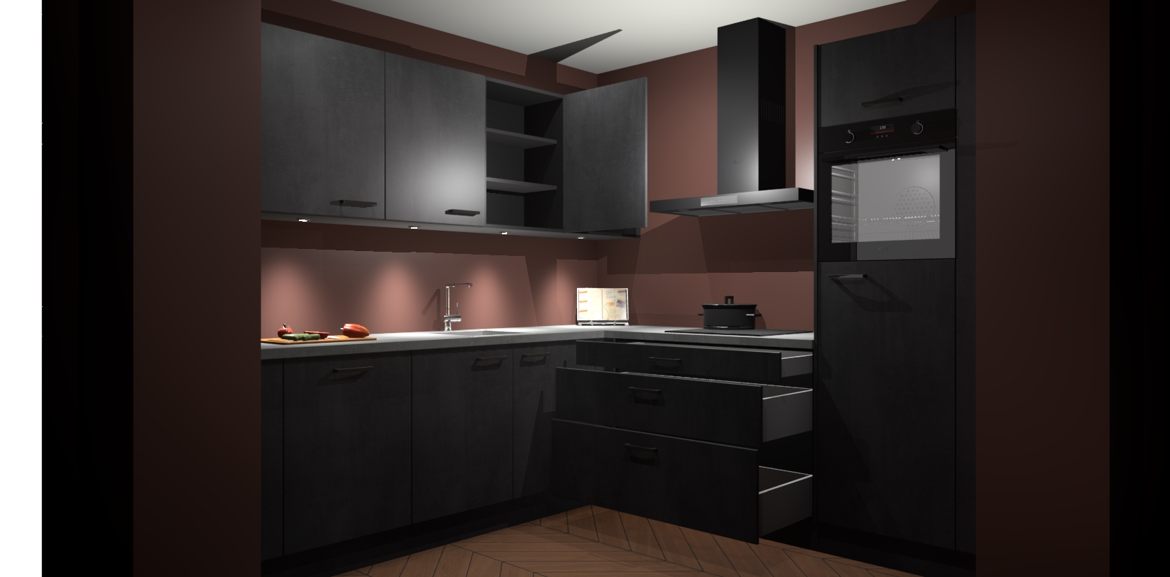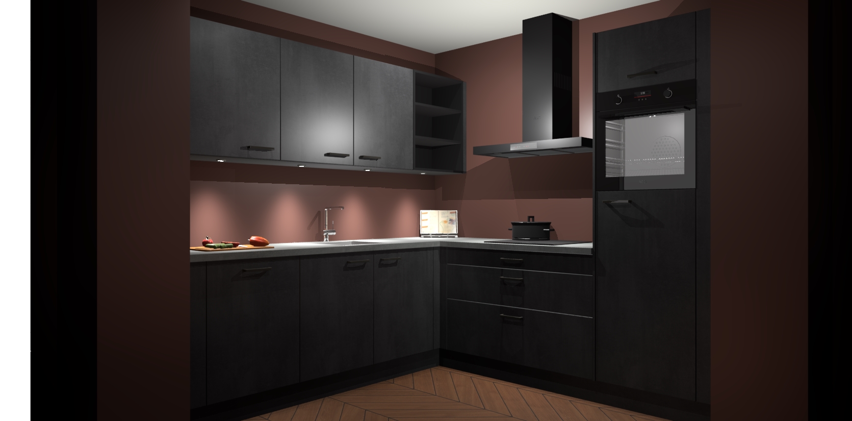 Wij presenteren de revolutie in keukens: de Beton Zwarte keuken Luanda. Met modern design, een tijdloos uiterlijk en kasten die al voor gemonteerd worden geleverd, laat deze stijlvolle keuken uw kookervaring op een hele nieuwe manier transformeren.