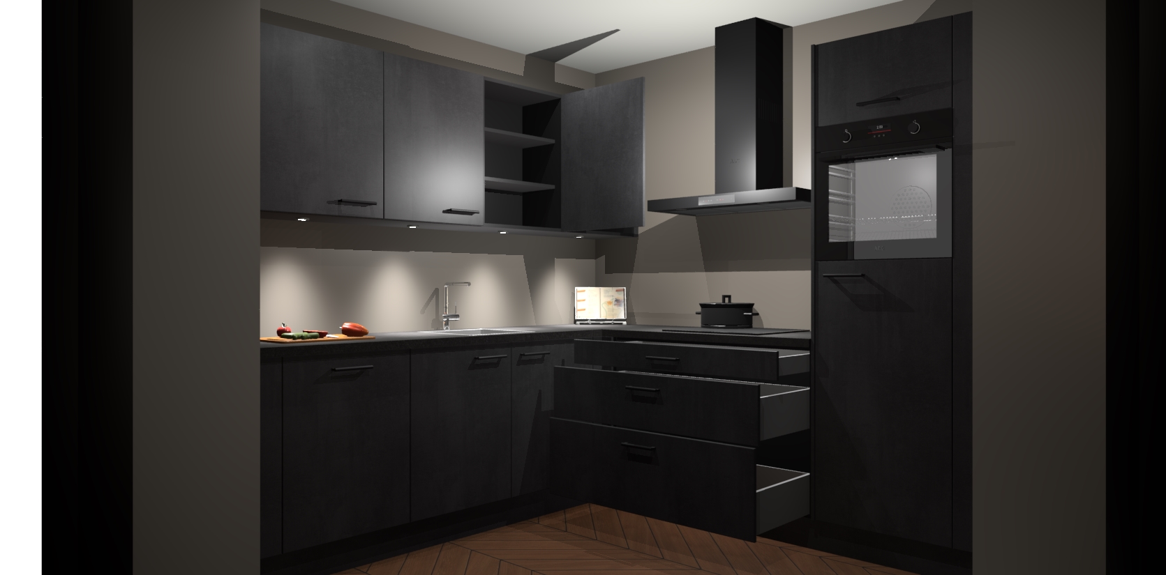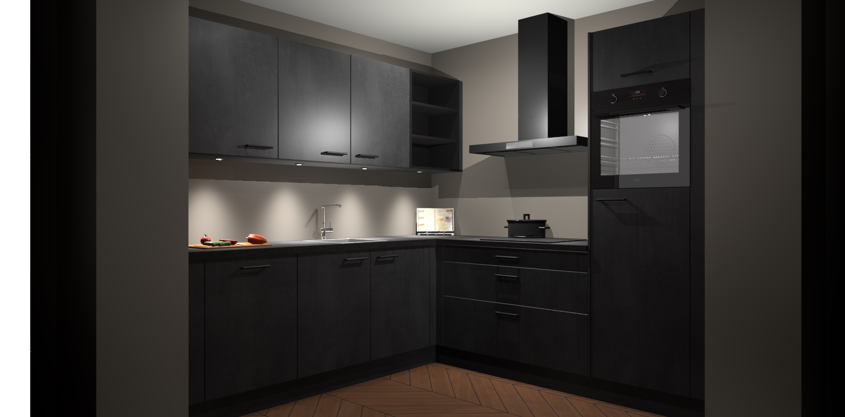 Wij presenteren de revolutie in keukens: de Beton Zwarte keuken Luanda. Met modern design, een tijdloos uiterlijk en kasten die al voor gemonteerd worden geleverd, laat deze stijlvolle keuken uw kookervaring op een hele nieuwe manier transformeren.