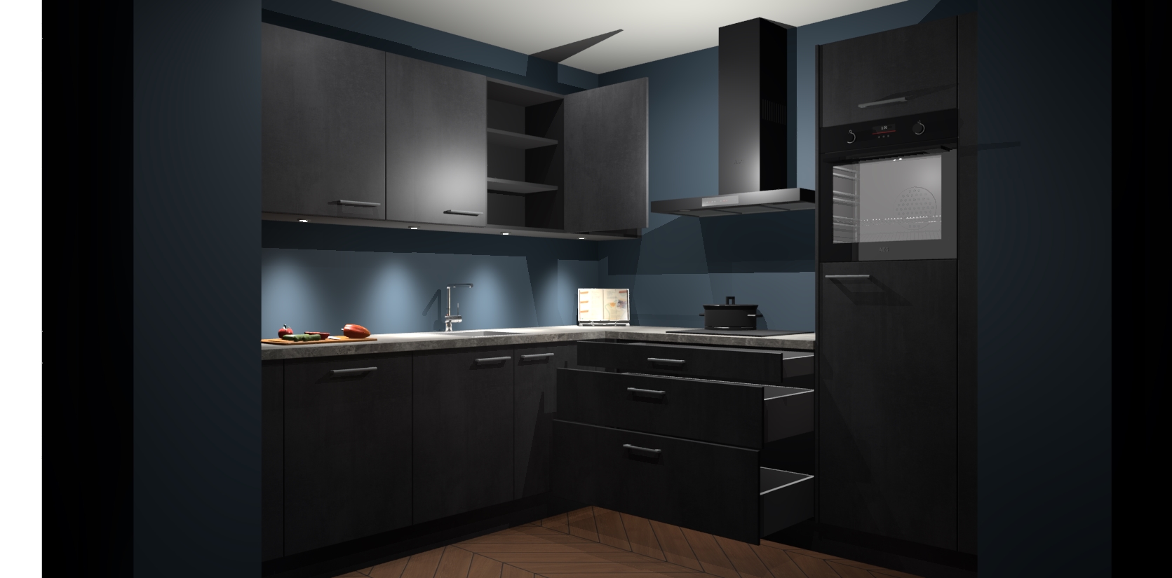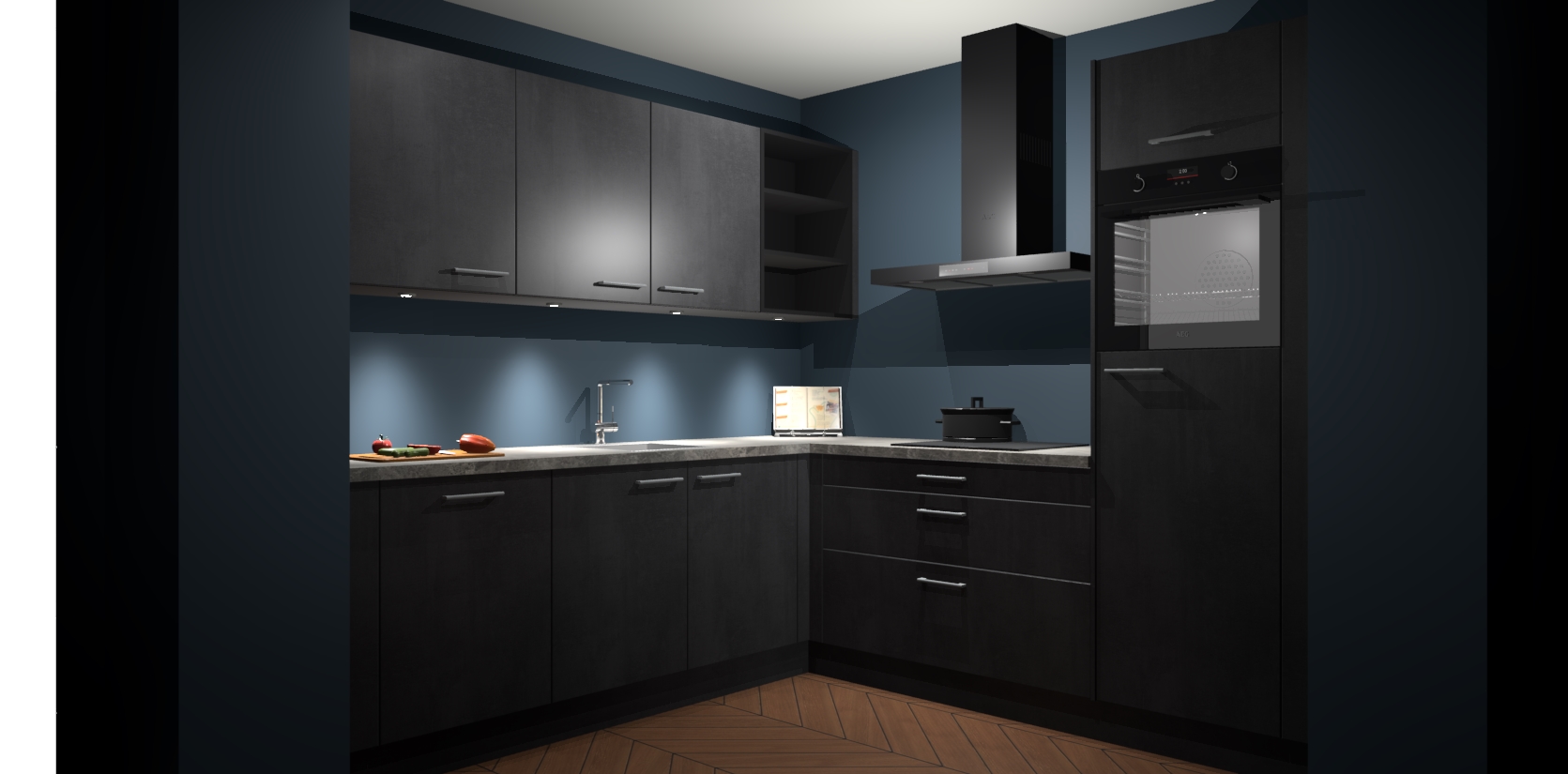 Wij presenteren de revolutie in keukens: de Beton Zwarte keuken Luanda. Met modern design, een tijdloos uiterlijk en kasten die al voor gemonteerd worden geleverd, laat deze stijlvolle keuken uw kookervaring op een hele nieuwe manier transformeren.