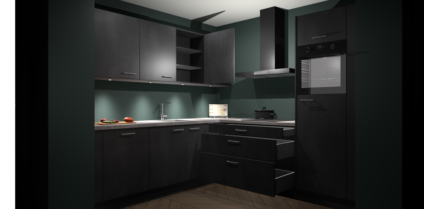 Wij presenteren de revolutie in keukens: de Beton Zwarte keuken Luanda. Met modern design, een tijdloos uiterlijk en kasten die al voor gemonteerd worden geleverd, laat deze stijlvolle keuken uw kookervaring op een hele nieuwe manier transformeren.