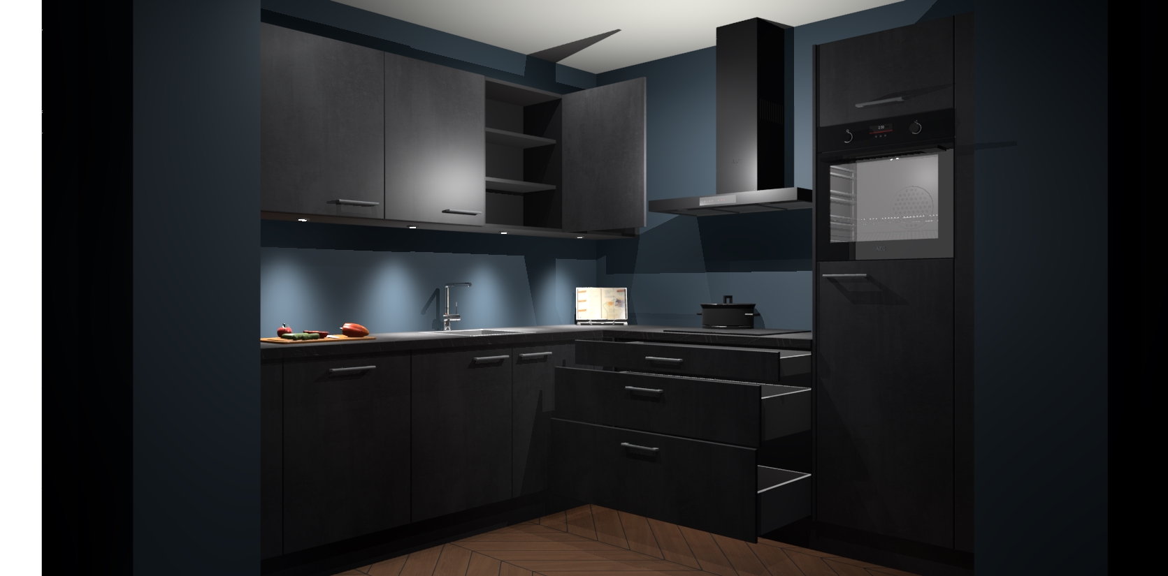Wij presenteren de revolutie in keukens: de Beton Zwarte keuken Luanda. Met modern design, een tijdloos uiterlijk en kasten die al voor gemonteerd worden geleverd, laat deze stijlvolle keuken uw kookervaring op een hele nieuwe manier transformeren.