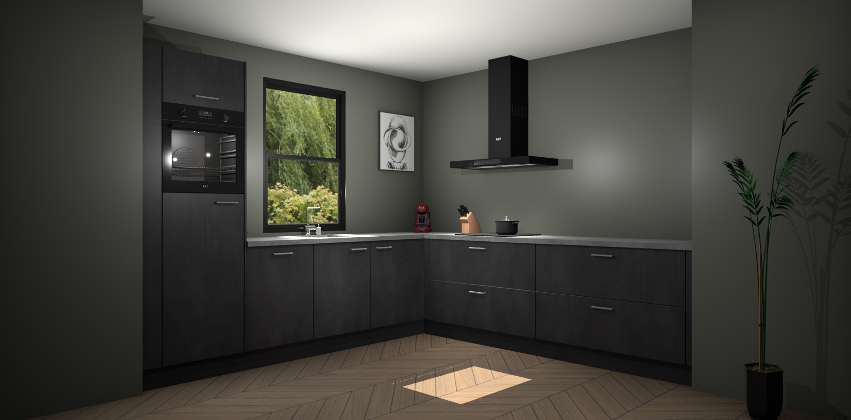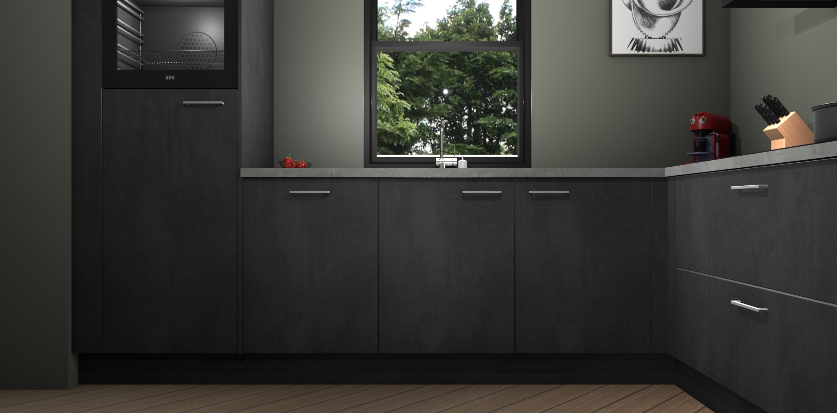Welkom bij de Beton zwarte keuken Lublin. Deze prachtige keuken zal de komende jaren het middelpunt van de belangstelling in uw huis zijn. Uitgerust met vijf inbouwapparaten komt u nooit kookgereedschap tekort. Bovendien geeft de warme houtlook elke ruimte een uitnodigende en tijdloze uitstraling.