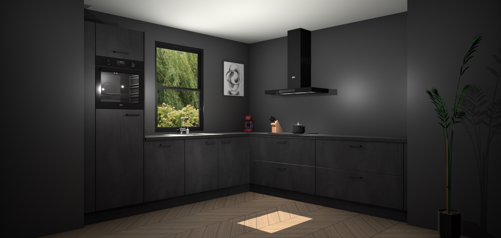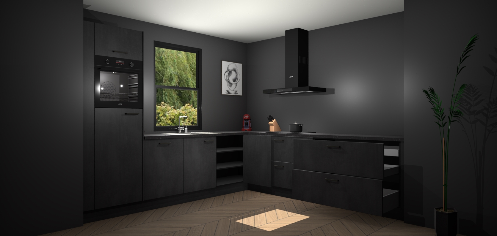 Welkom bij de Beton zwarte keuken Lublin. Deze prachtige keuken zal de komende jaren het middelpunt van de belangstelling in uw huis zijn. Uitgerust met vijf inbouwapparaten komt u nooit kookgereedschap tekort. Bovendien geeft de warme houtlook elke ruimte een uitnodigende en tijdloze uitstraling.