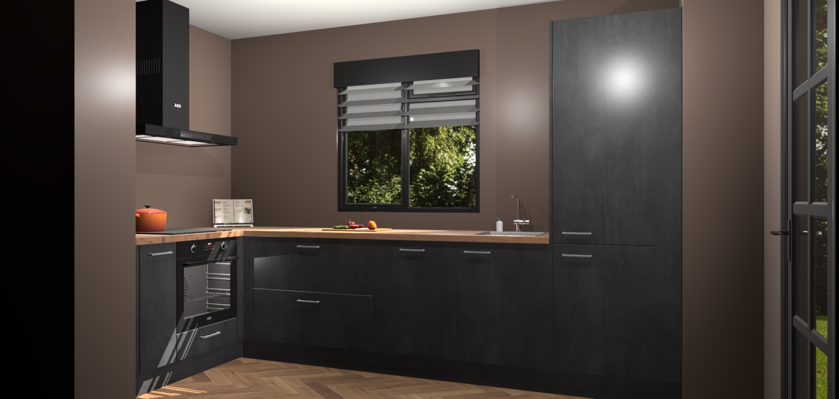 Moedige modernisten! De Beton Zwarte keuken Luzern is het perfecte antwoord op al uw keukendromen. Dit geraffineerde, tijdloze ontwerp combineert strakke kasten zodat u die dure look krijgt zonder het dure prijskaartje. We weten dat planning en uitvoering de sleutels zijn tot een geslaagde keukenrenovatie, dus hebben we ervoor gezorgd dat we vijf inbouwapparaten in ons pakket hebben: een oven, inductiekookplaat, afzuigkap, vaatwasser en koelkast. Deze kunnen na bestelling gemakkelijk worden uitgebreid voor nog meer gemak.