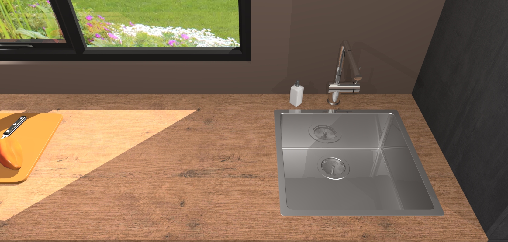 - De spoelbak is nog niet in gevreesd. Dit dient tijdens het werk gedaan te worden