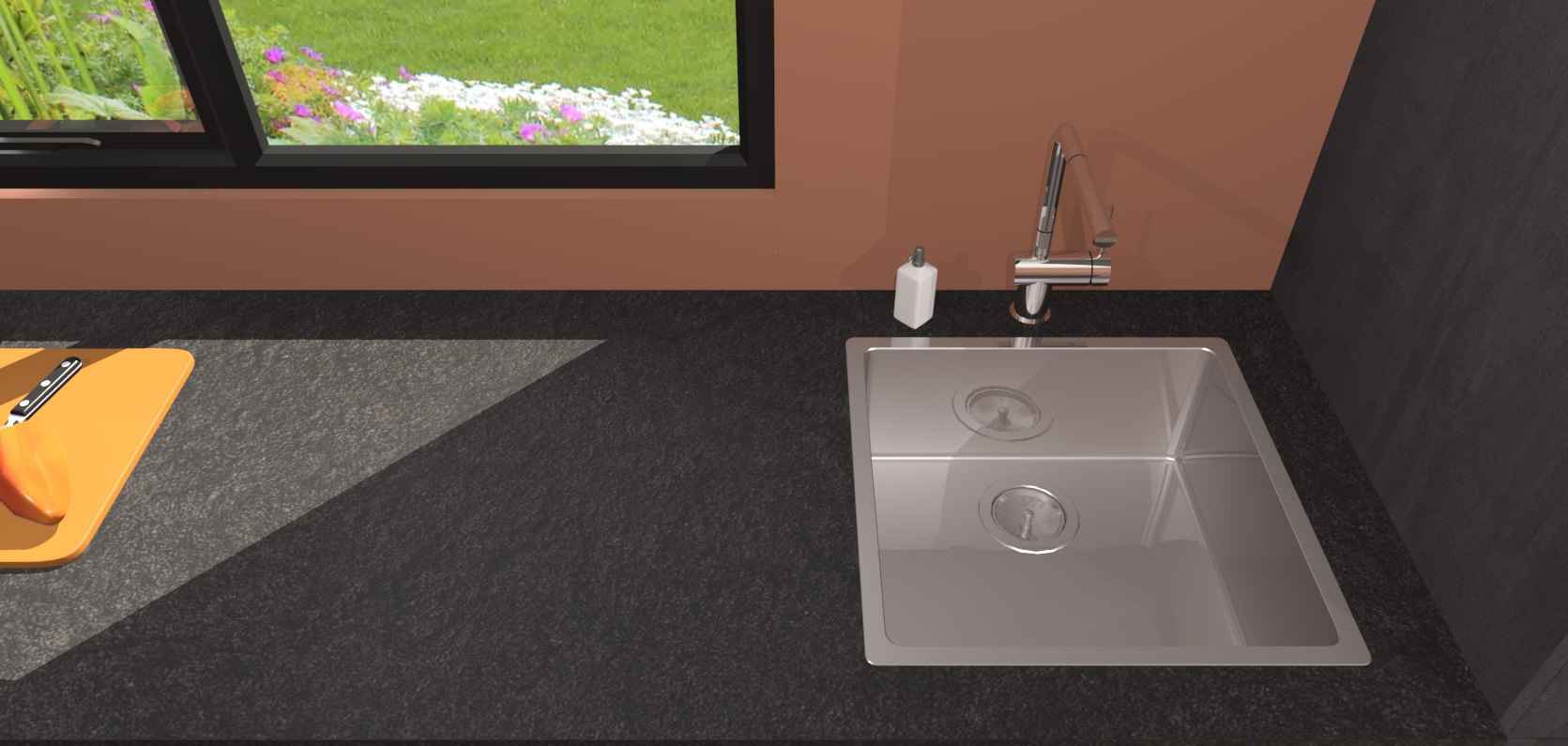 - De spoelbak is nog niet in gevreesd. Dit dient tijdens het werk gedaan te worden