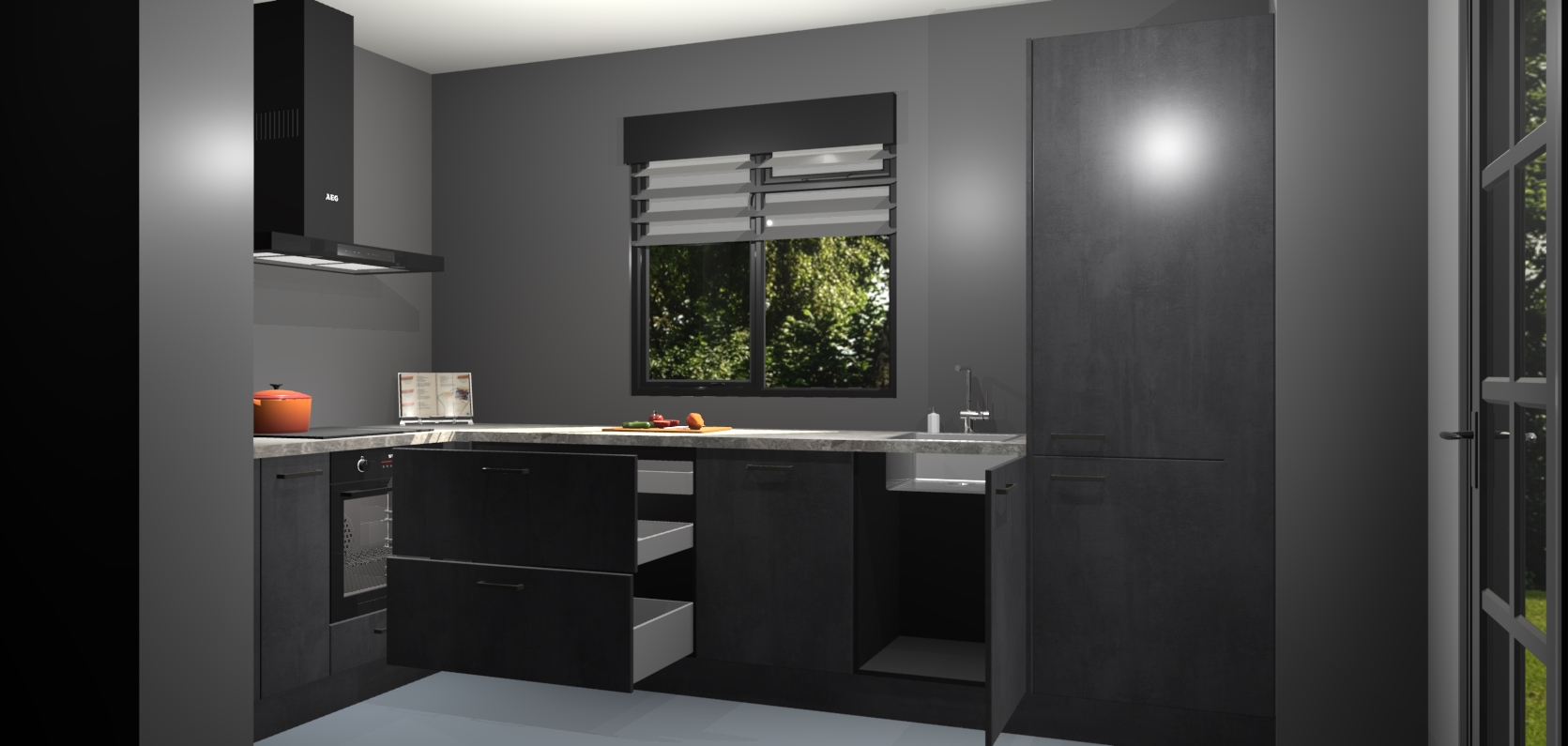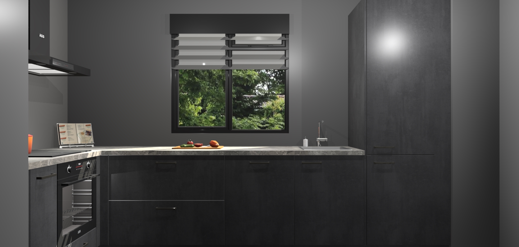 Moedige modernisten! De Beton Zwarte keuken Luzern is het perfecte antwoord op al uw keukendromen. Dit geraffineerde, tijdloze ontwerp combineert strakke kasten zodat u die dure look krijgt zonder het dure prijskaartje. We weten dat planning en uitvoering de sleutels zijn tot een geslaagde keukenrenovatie, dus hebben we ervoor gezorgd dat we vijf inbouwapparaten in ons pakket hebben: een oven, inductiekookplaat, afzuigkap, vaatwasser en koelkast. Deze kunnen na bestelling gemakkelijk worden uitgebreid voor nog meer gemak.