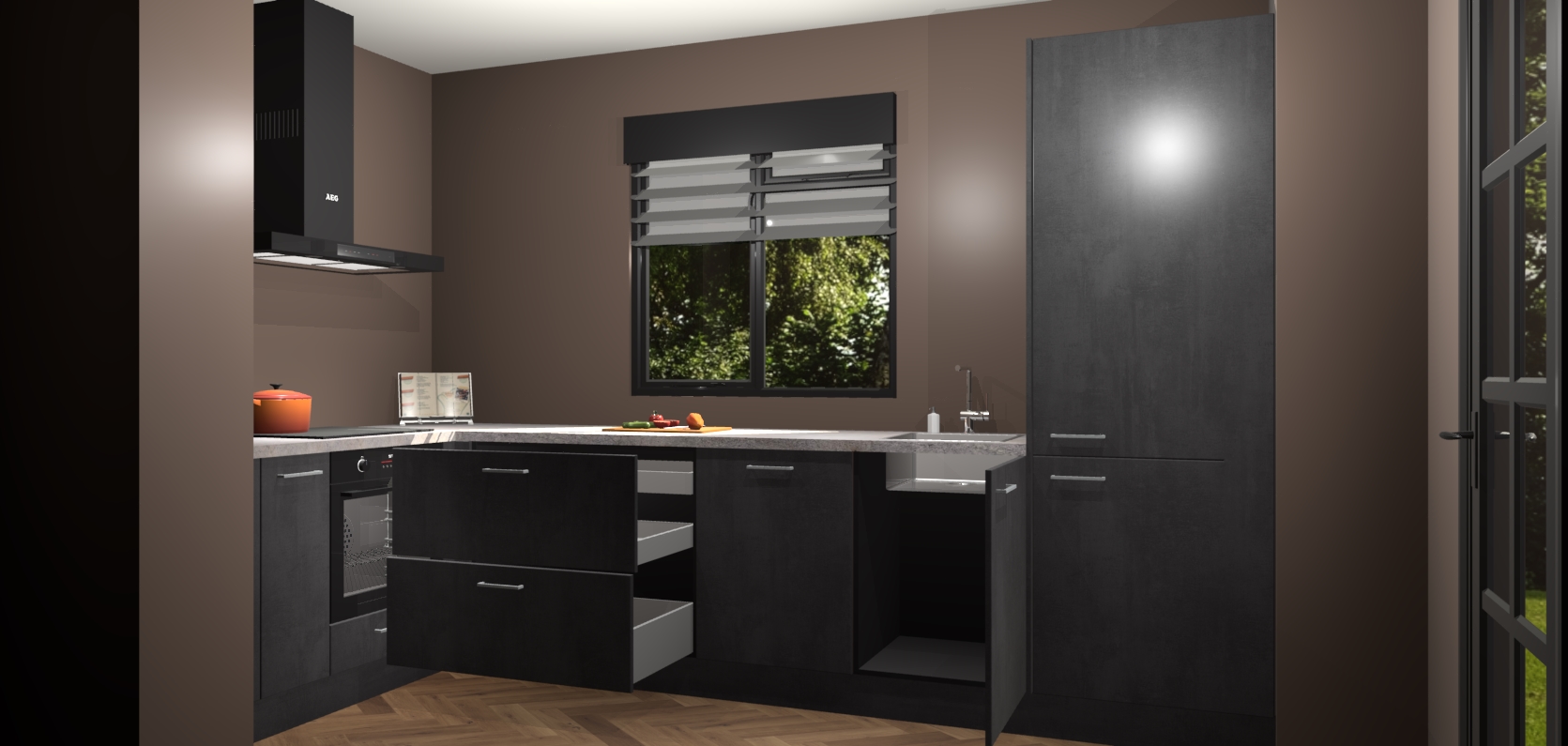 Moedige modernisten! De Beton Zwarte keuken Luzern is het perfecte antwoord op al uw keukendromen. Dit geraffineerde, tijdloze ontwerp combineert strakke kasten zodat u die dure look krijgt zonder het dure prijskaartje. We weten dat planning en uitvoering de sleutels zijn tot een geslaagde keukenrenovatie, dus hebben we ervoor gezorgd dat we vijf inbouwapparaten in ons pakket hebben: een oven, inductiekookplaat, afzuigkap, vaatwasser en koelkast. Deze kunnen na bestelling gemakkelijk worden uitgebreid voor nog meer gemak.
