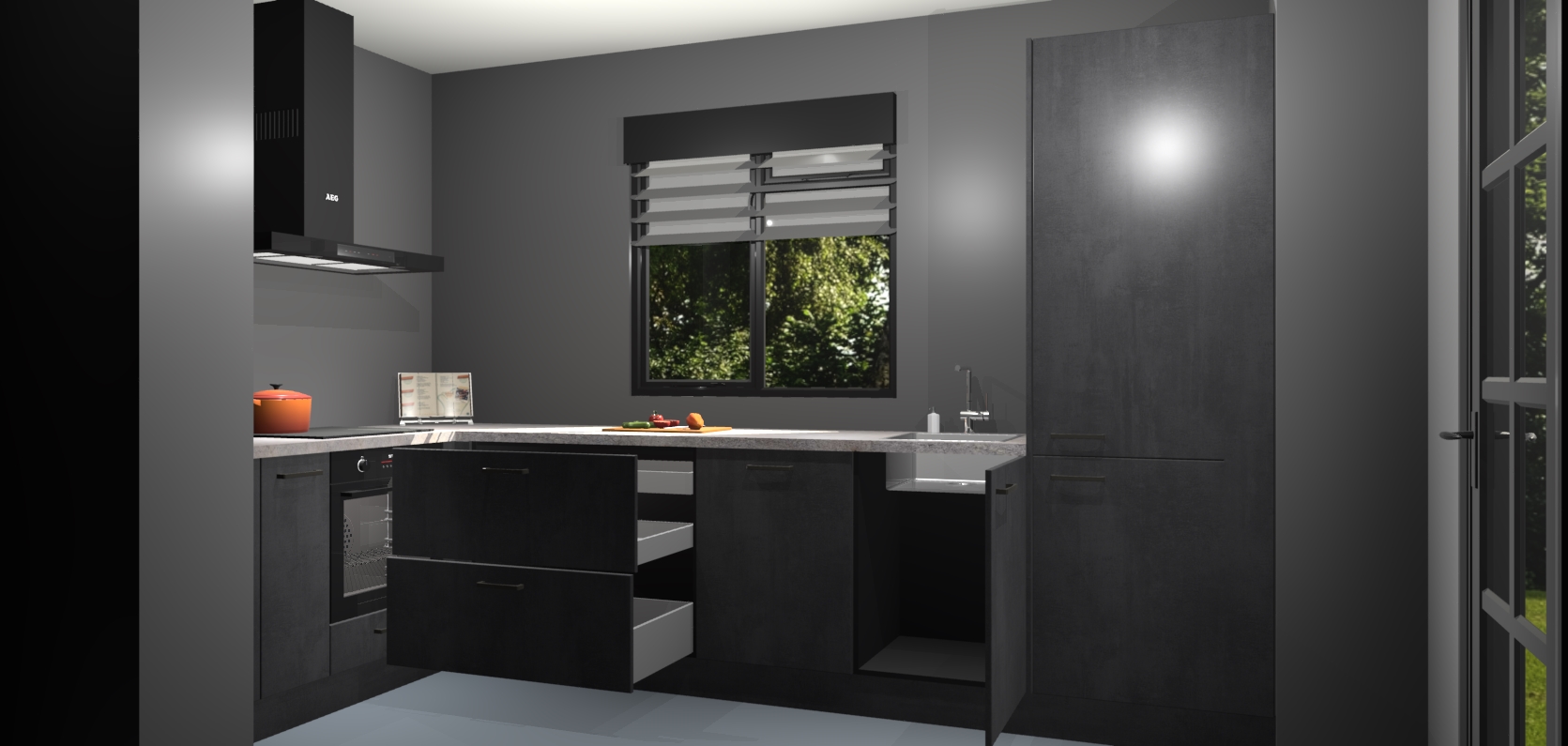 Moedige modernisten! De Beton Zwarte keuken Luzern is het perfecte antwoord op al uw keukendromen. Dit geraffineerde, tijdloze ontwerp combineert strakke kasten zodat u die dure look krijgt zonder het dure prijskaartje. We weten dat planning en uitvoering de sleutels zijn tot een geslaagde keukenrenovatie, dus hebben we ervoor gezorgd dat we vijf inbouwapparaten in ons pakket hebben: een oven, inductiekookplaat, afzuigkap, vaatwasser en koelkast. Deze kunnen na bestelling gemakkelijk worden uitgebreid voor nog meer gemak.