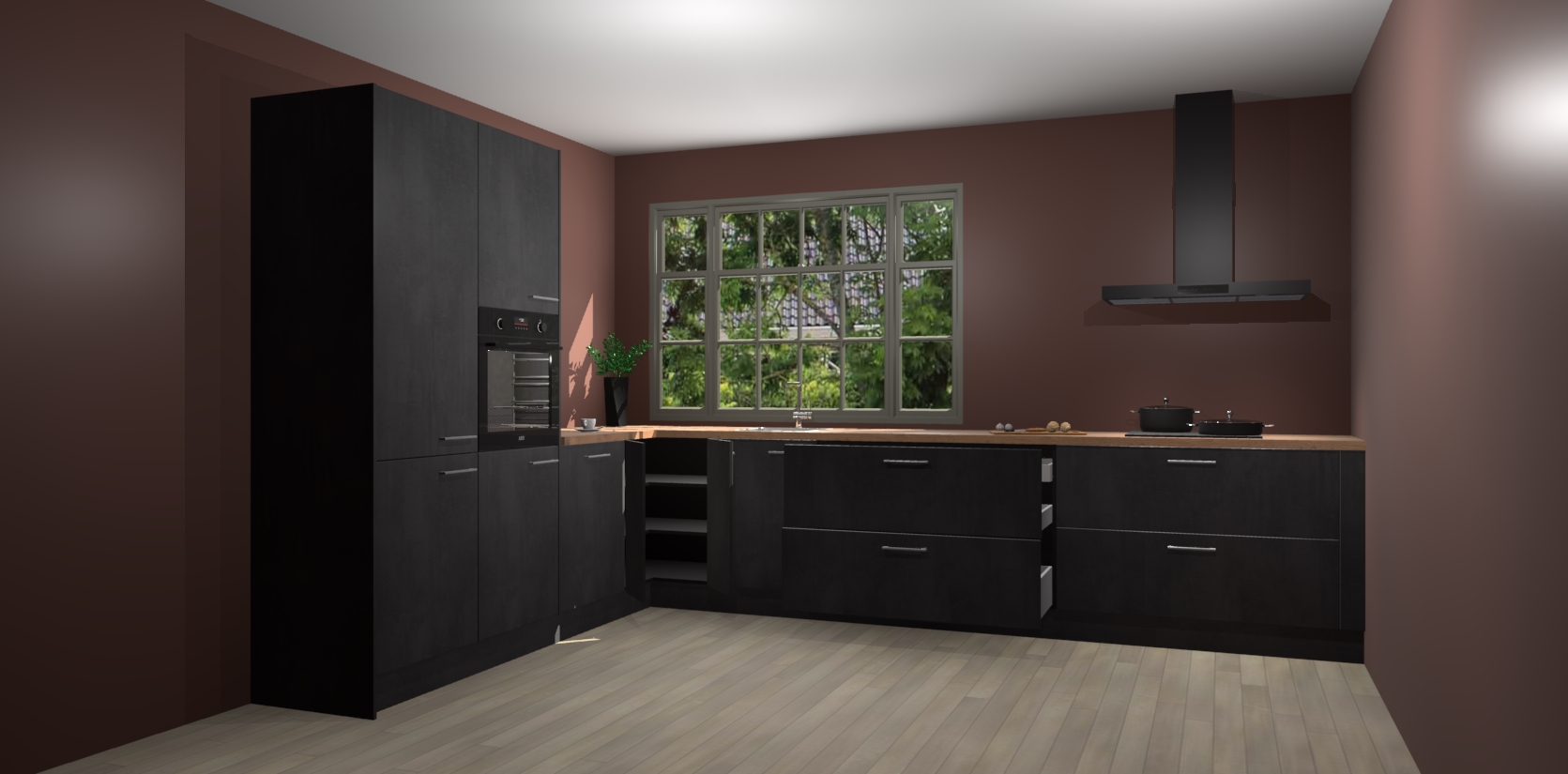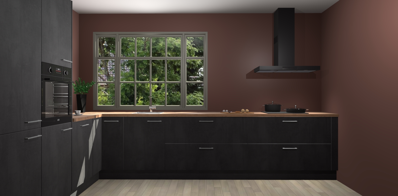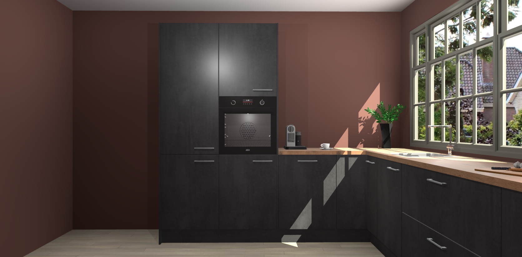 Kom dichtbij de perfecte keuken van uw dromen met de Beton Zwarte keuken Malaga. Met een prachtige houtlook en eigentijds ontwerp, straalt deze keuken warmte en sfeer uit. Of u nu liefhebber bent van traditionele of moderne stijlen, er is genoeg ruimte om aan al uw behoeften te voldoen.