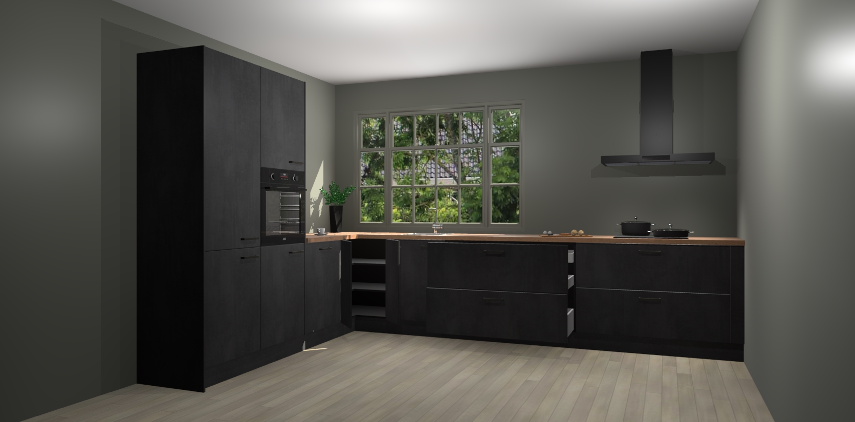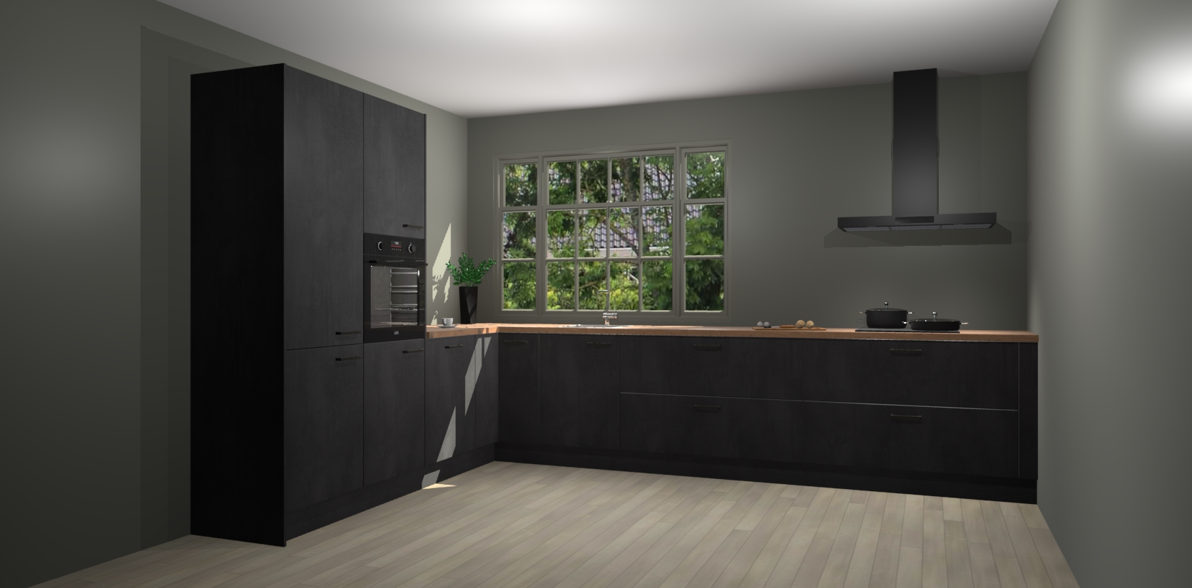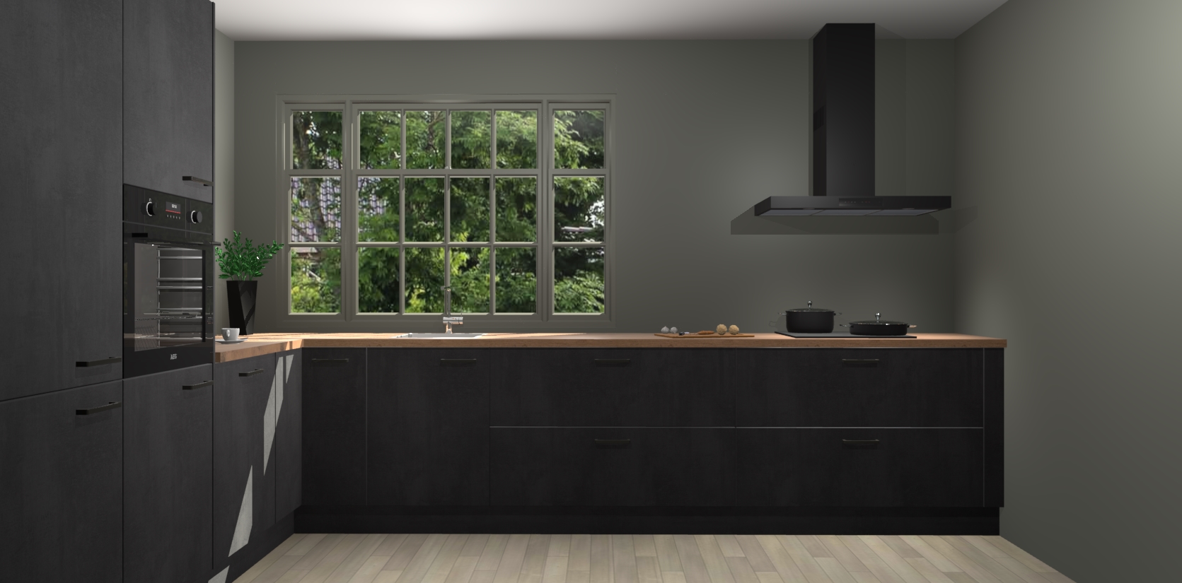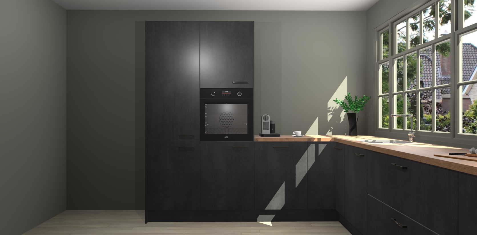 Kom dichtbij de perfecte keuken van uw dromen met de Beton Zwarte keuken Malaga. Met een prachtige houtlook en eigentijds ontwerp, straalt deze keuken warmte en sfeer uit. Of u nu liefhebber bent van traditionele of moderne stijlen, er is genoeg ruimte om aan al uw behoeften te voldoen.