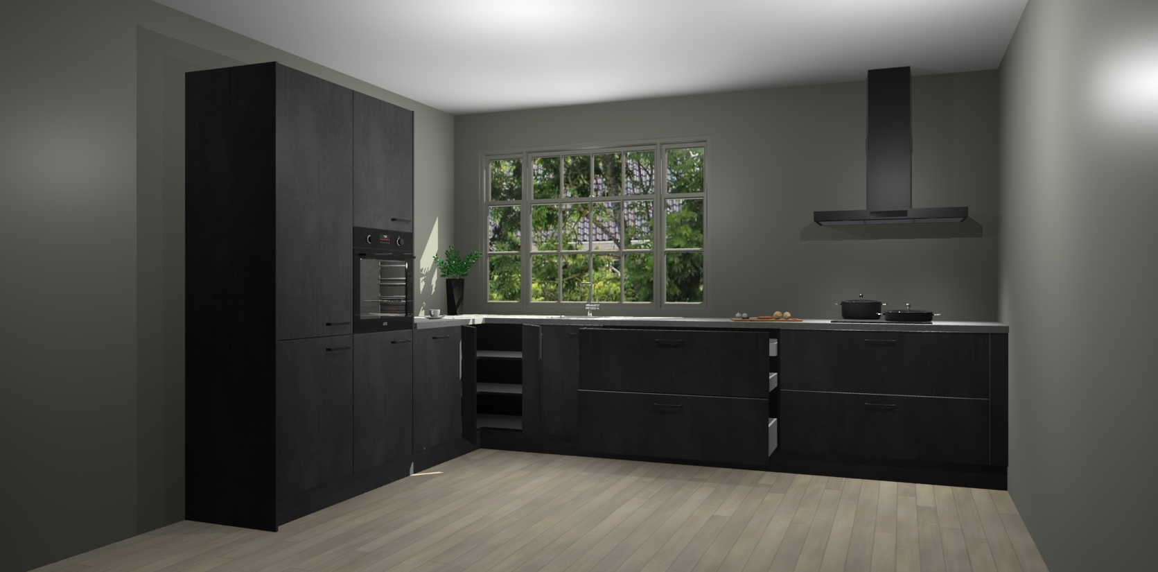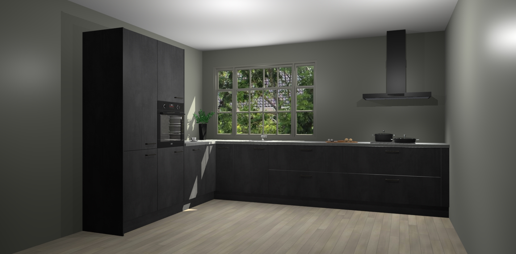 Kom dichtbij de perfecte keuken van uw dromen met de Beton Zwarte keuken Malaga. Met een prachtige houtlook en eigentijds ontwerp, straalt deze keuken warmte en sfeer uit. Of u nu liefhebber bent van traditionele of moderne stijlen, er is genoeg ruimte om aan al uw behoeften te voldoen.