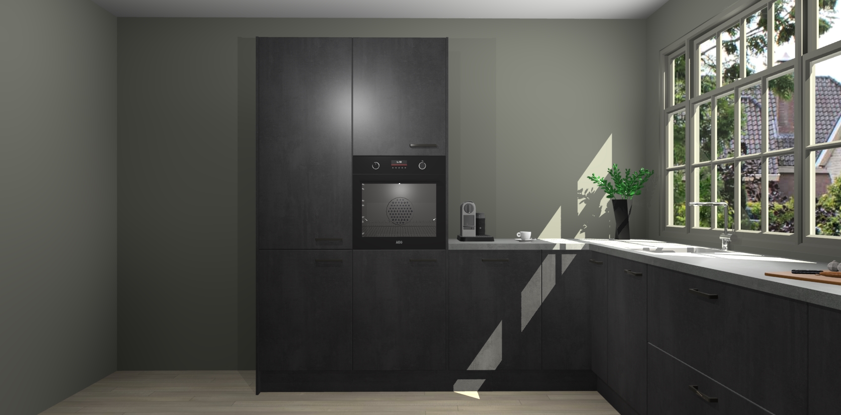 Heeft u nog apparatuur nodig? Geen probleem: de Beton Zwarte keuken Malaga bevat vijf ingebouwde apparaten - een oven, inductiekookplaat, afzuigkap, vaatwasser en koelkast - die gemakkelijk kunnen worden bijgewerkt naar AEG na bestelling. En als dat nog niet genoeg is; onze kasten worden pre-geassembleerd geleverd en zijn verkrijgbaar tegen een vastgeroeste lage prijs! U hoeft nooit meer te zoeken naar goede kwaliteit en service want onze producten hebben echt Duitse kwaliteit.