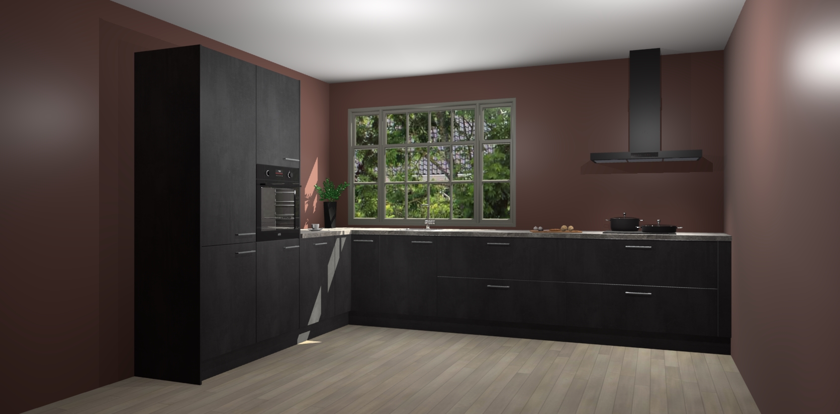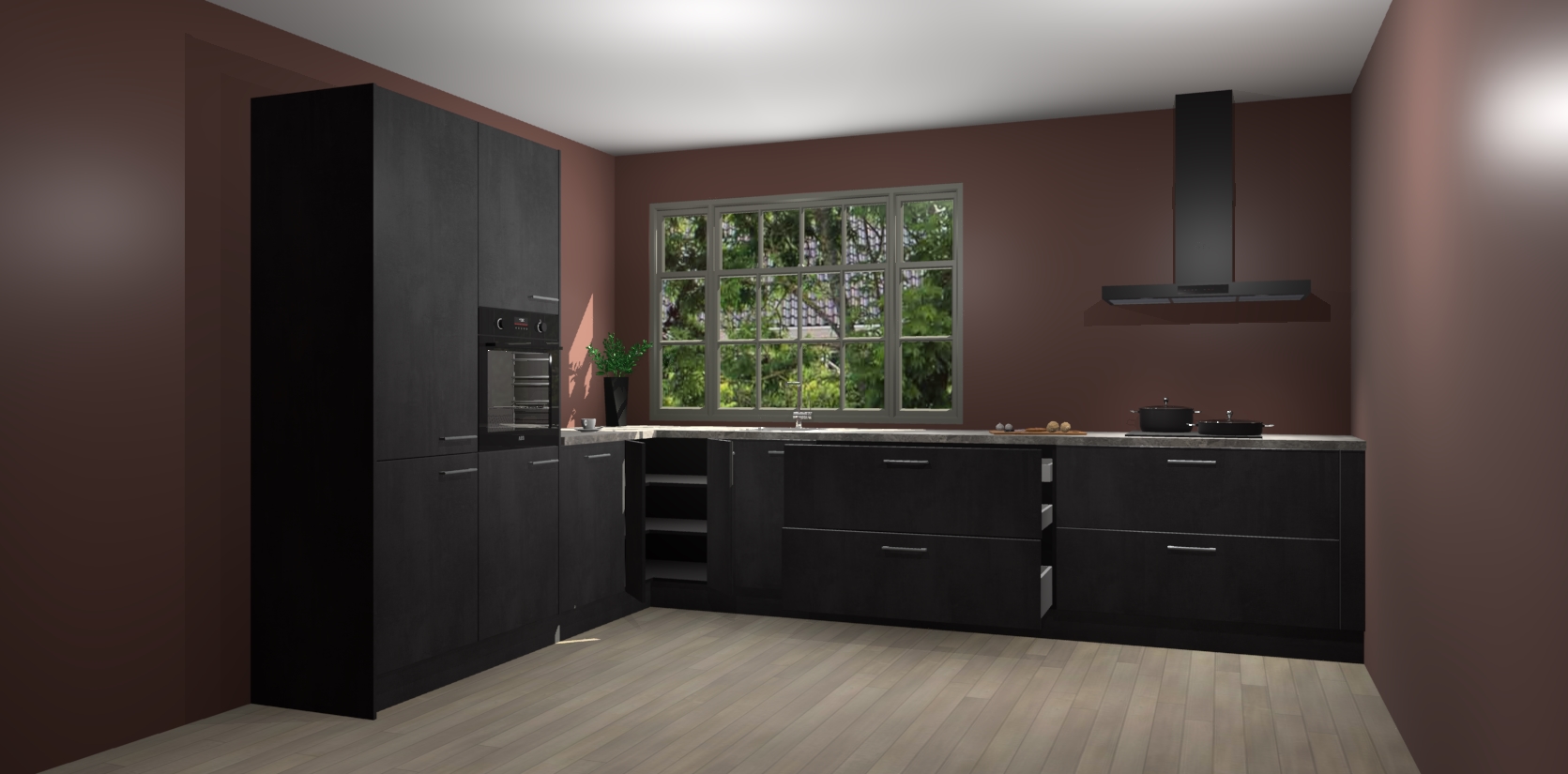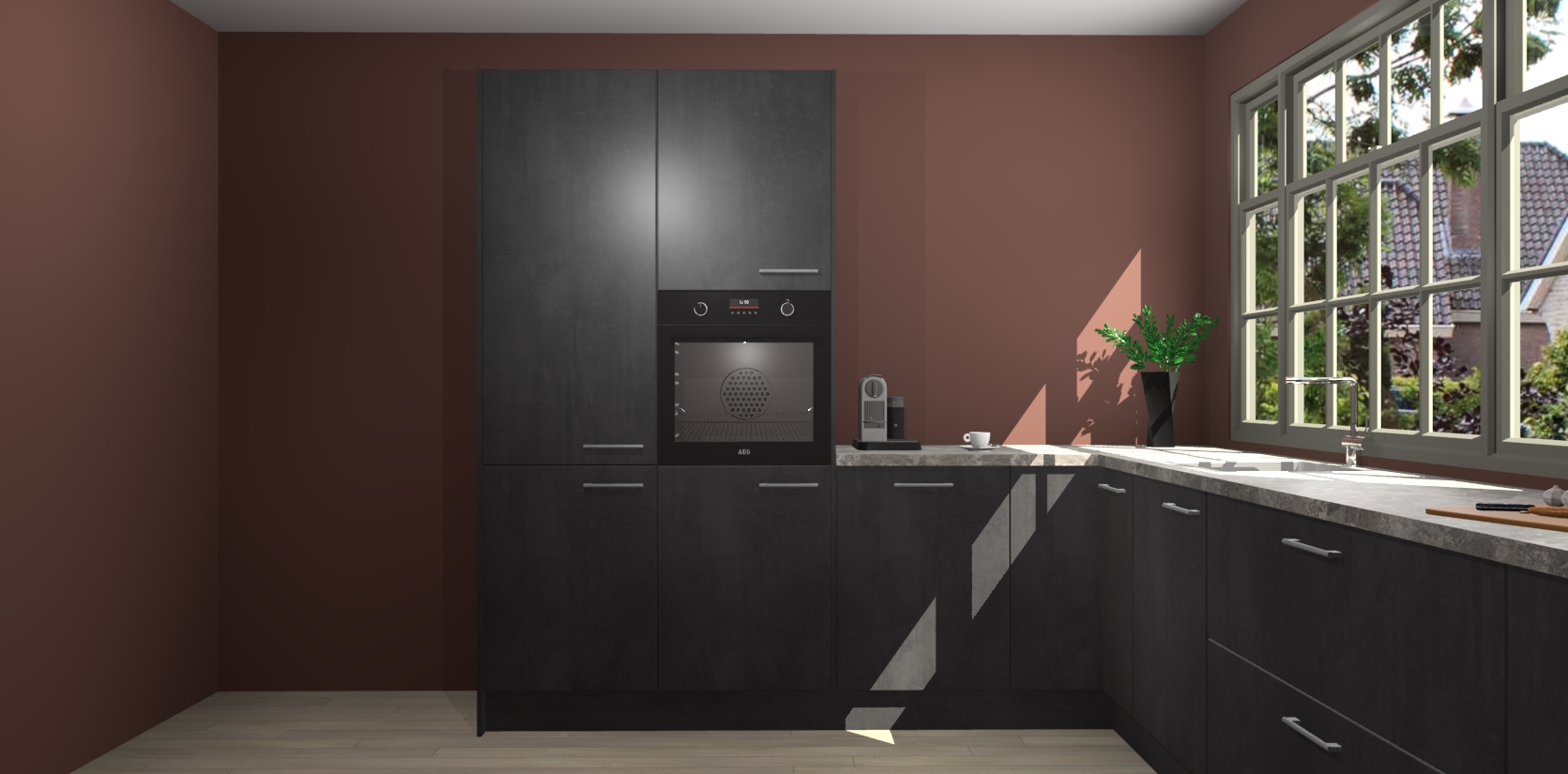 Kom dichtbij de perfecte keuken van uw dromen met de Beton Zwarte keuken Malaga. Met een prachtige houtlook en eigentijds ontwerp, straalt deze keuken warmte en sfeer uit. Of u nu liefhebber bent van traditionele of moderne stijlen, er is genoeg ruimte om aan al uw behoeften te voldoen.