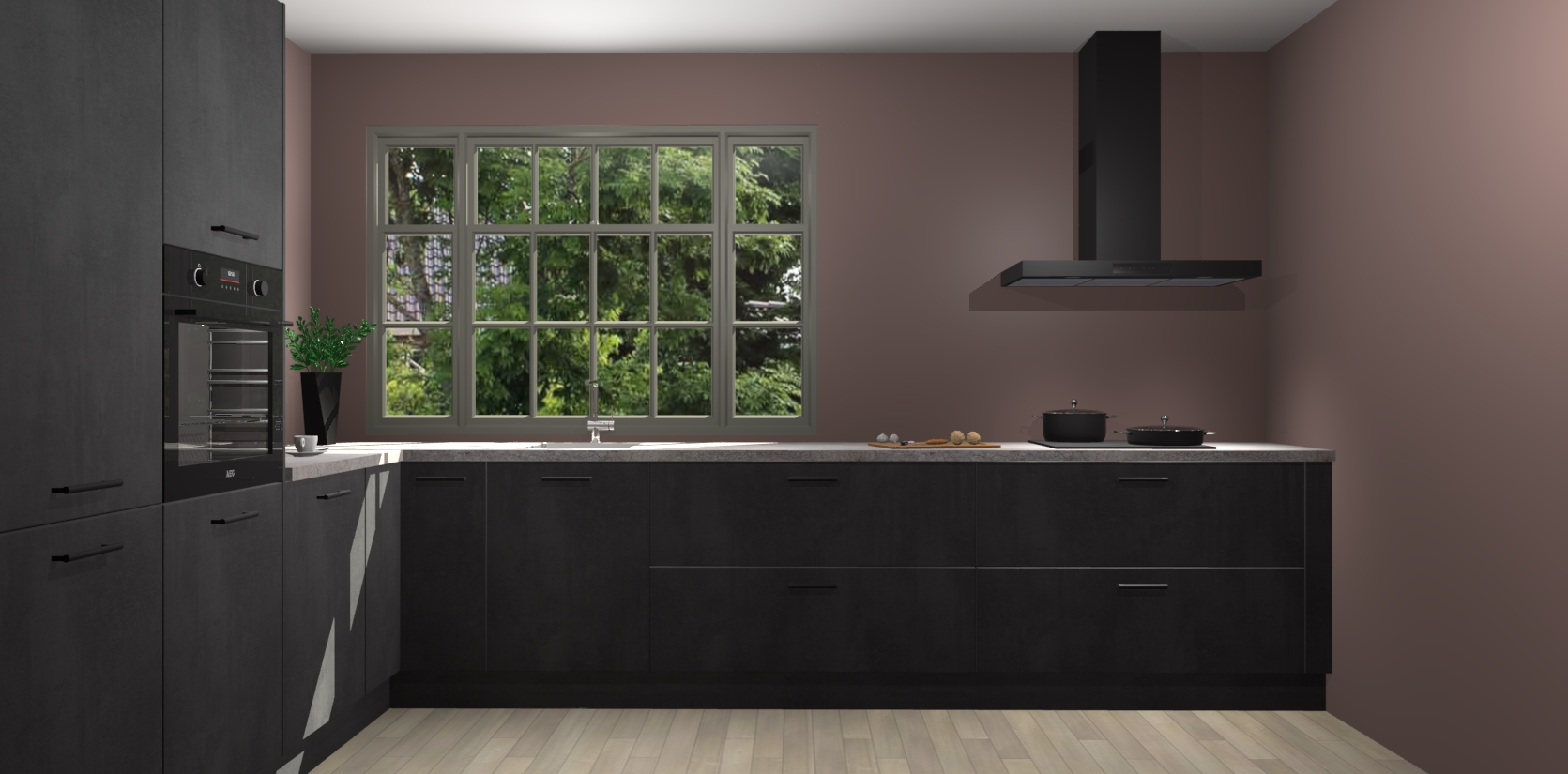 Heeft u nog apparatuur nodig? Geen probleem: de Beton Zwarte keuken Malaga bevat vijf ingebouwde apparaten - een oven, inductiekookplaat, afzuigkap, vaatwasser en koelkast - die gemakkelijk kunnen worden bijgewerkt naar AEG na bestelling. En als dat nog niet genoeg is; onze kasten worden pre-geassembleerd geleverd en zijn verkrijgbaar tegen een vastgeroeste lage prijs! U hoeft nooit meer te zoeken naar goede kwaliteit en service want onze producten hebben echt Duitse kwaliteit.