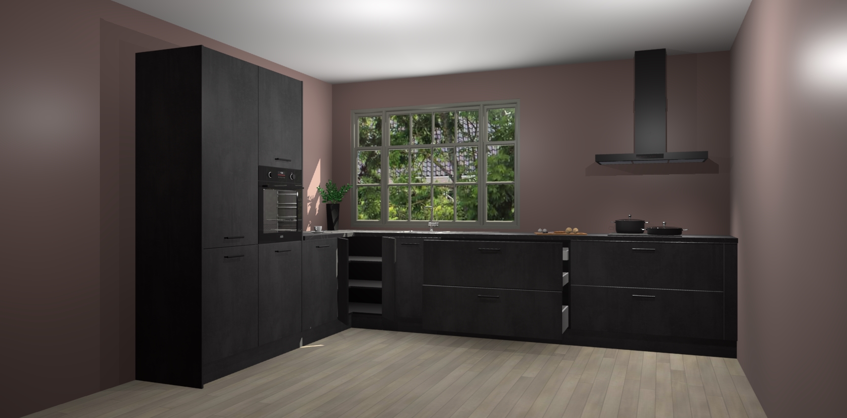 Kom dichtbij de perfecte keuken van uw dromen met de Beton Zwarte keuken Malaga. Met een prachtige houtlook en eigentijds ontwerp, straalt deze keuken warmte en sfeer uit. Of u nu liefhebber bent van traditionele of moderne stijlen, er is genoeg ruimte om aan al uw behoeften te voldoen.