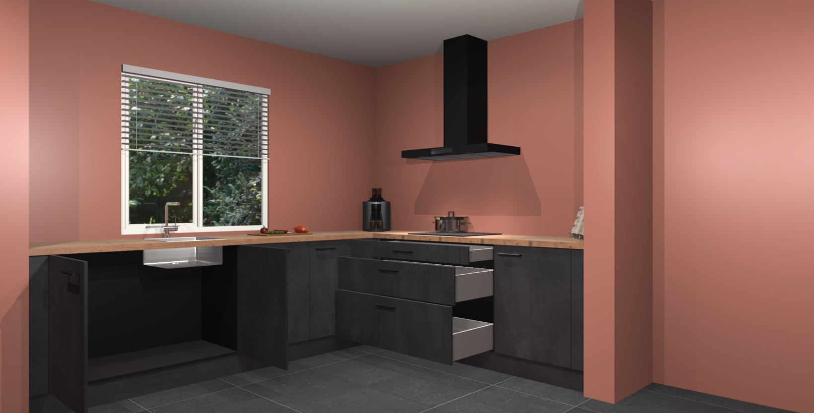 - Bij een hoekwerkblad zijn de hoeken in gevreesd en op maat gemaakt