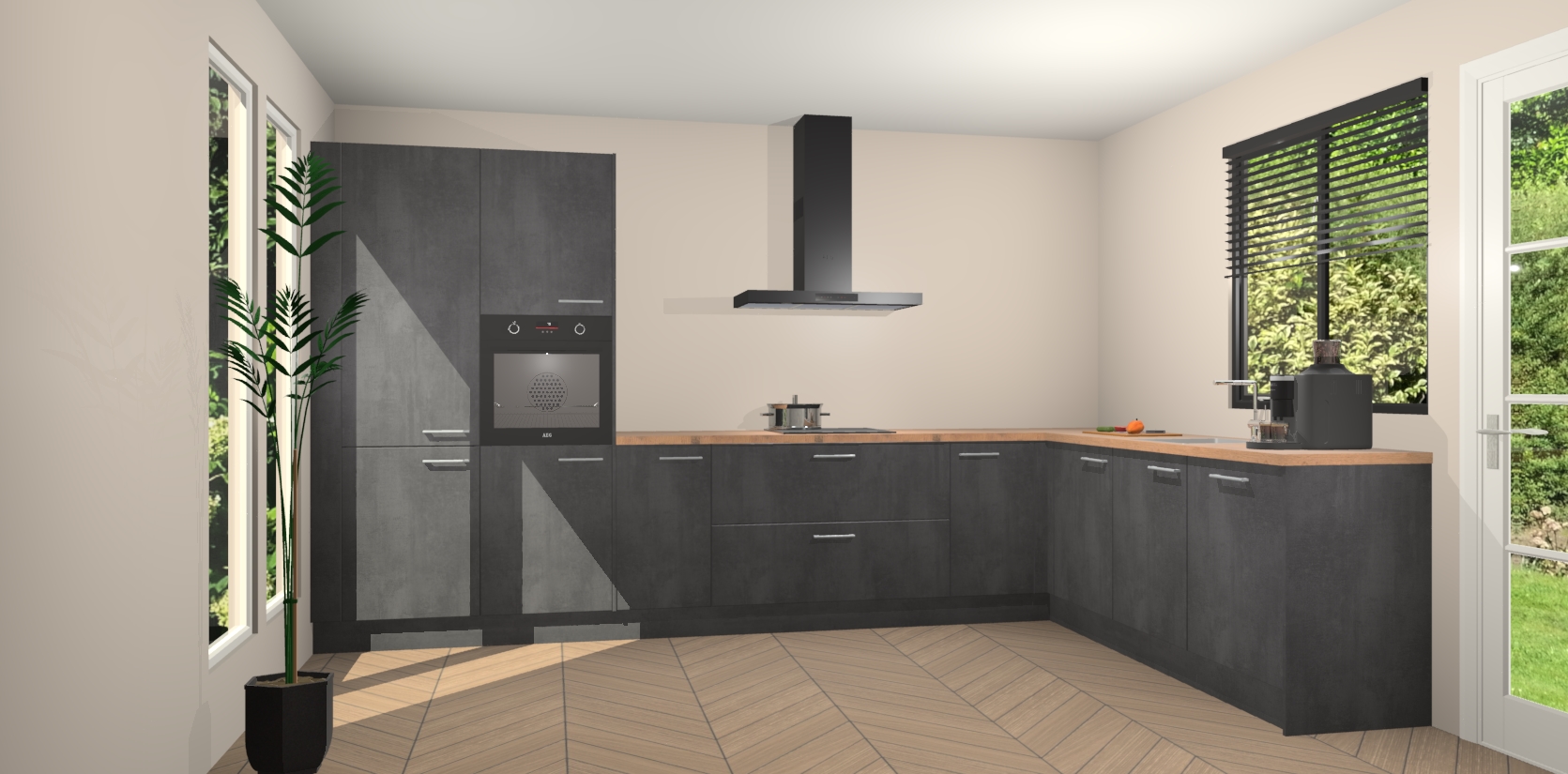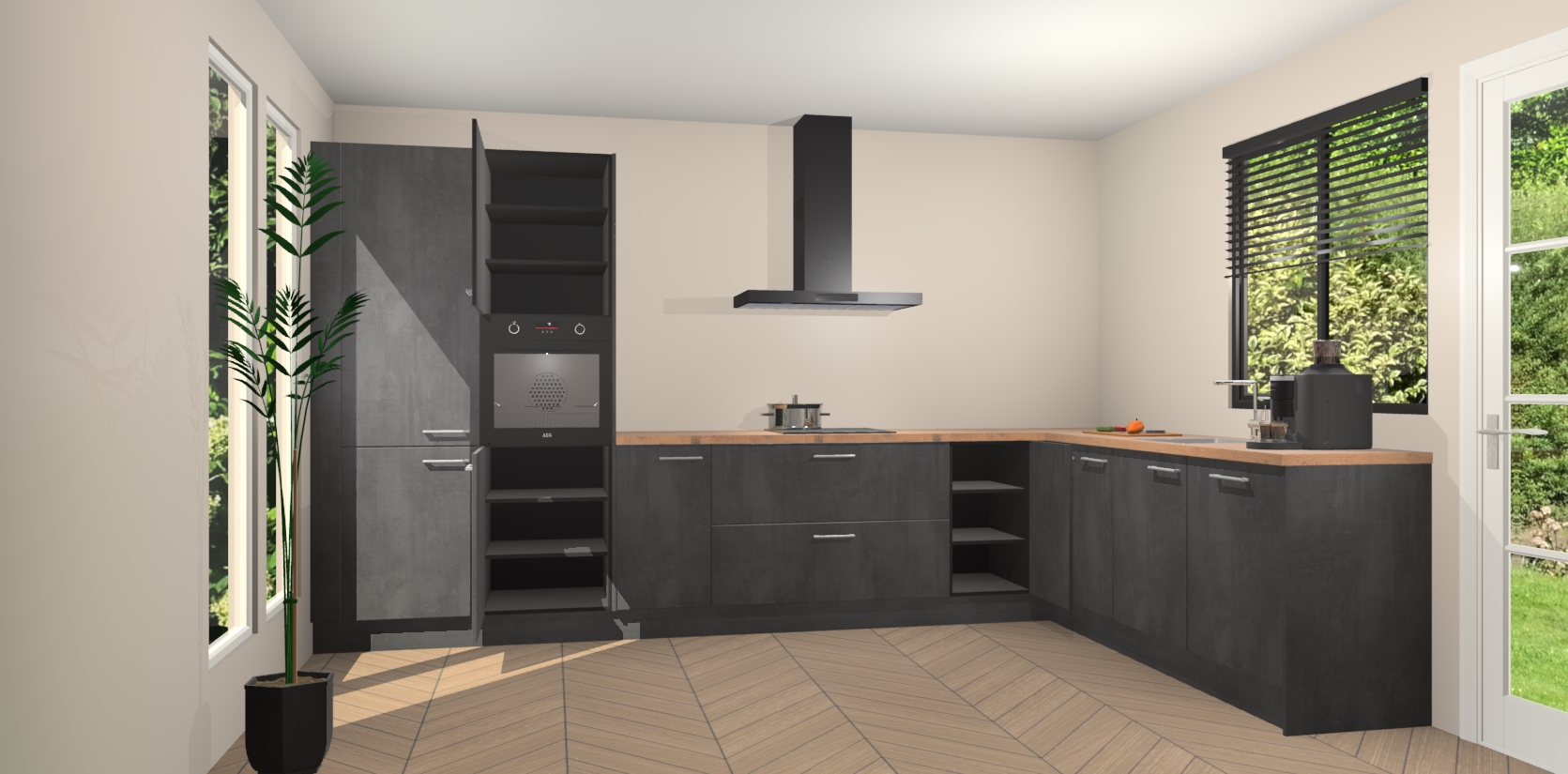 Wij presenteren de revolutie in keukens: de Beton Zwarte keuken Napels. Met modern design, een tijdloos uiterlijk en kasten die al voor gemonteerd worden geleverd, laat deze stijlvolle keuken uw kookervaring op een hele nieuwe manier transformeren.