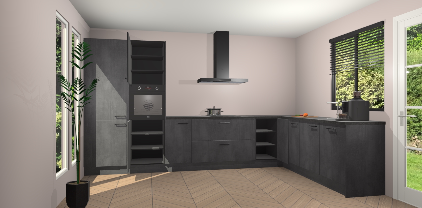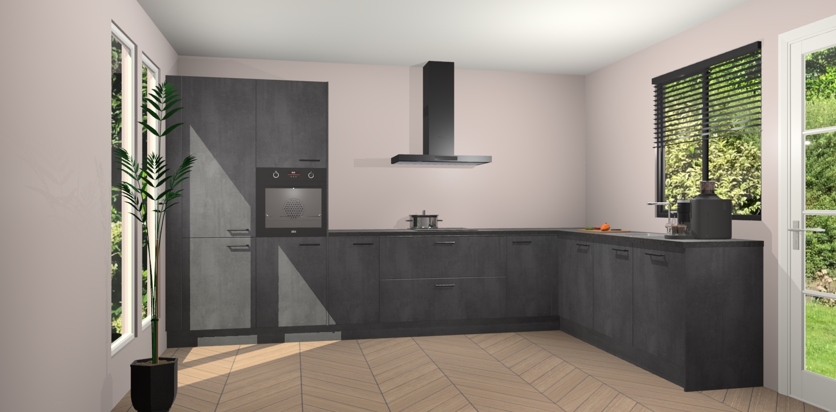Wij presenteren de revolutie in keukens: de Beton Zwarte keuken Napels. Met modern design, een tijdloos uiterlijk en kasten die al voor gemonteerd worden geleverd, laat deze stijlvolle keuken uw kookervaring op een hele nieuwe manier transformeren.