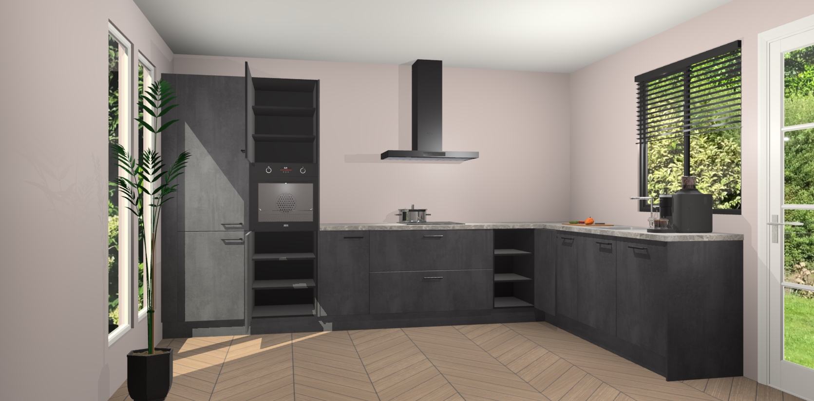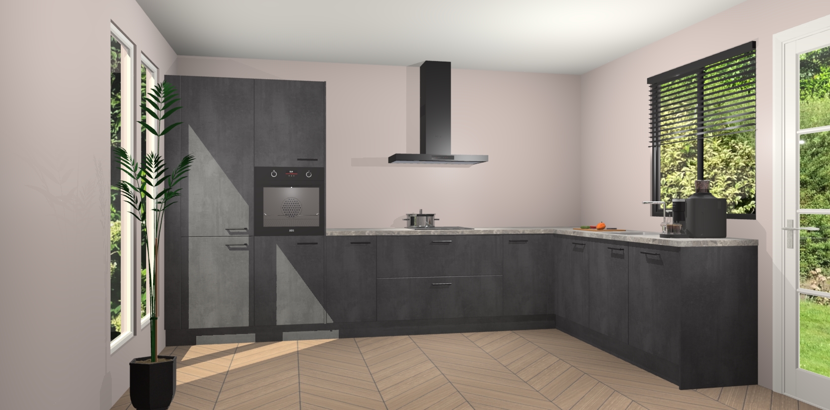 Wij presenteren de revolutie in keukens: de Beton Zwarte keuken Napels. Met modern design, een tijdloos uiterlijk en kasten die al voor gemonteerd worden geleverd, laat deze stijlvolle keuken uw kookervaring op een hele nieuwe manier transformeren.