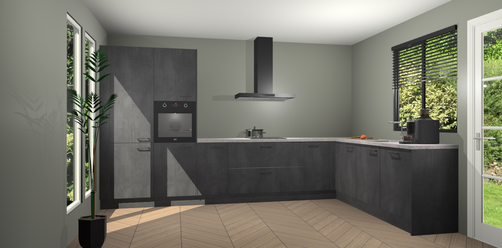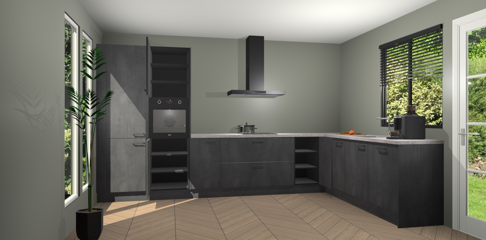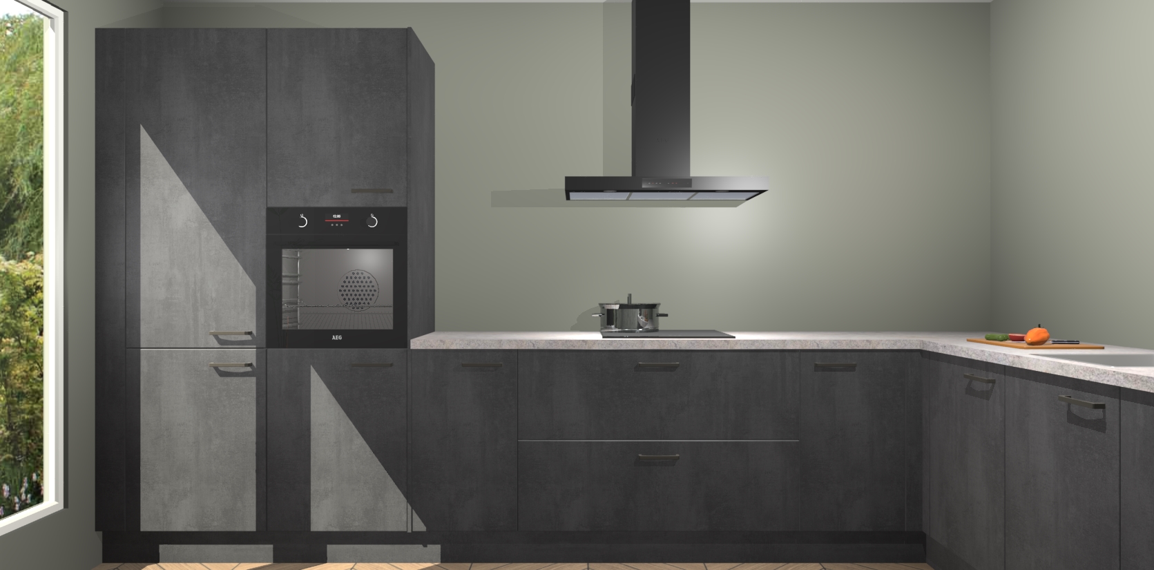 Met een modern, tijdloos design en ruime opslagruimte, zult u zich in no-time thuis voelen in uw nieuwe keuken. Uw leven wordt eenvoudiger met de soft-close deuren die voor het ultieme stille comfort zorgen - geen geluid dat u stoort terwijl u kookt. Ook is de keuken voorzien van 5 ingebouwde apparaten: een oven, inductie kookplaat, afzuigkap, vaatwasser en koelkast. Deze kunnen gemakkelijk na bestelling worden bijgewerkt naar AEG - waardoor uw luxe ervaring compleet is.