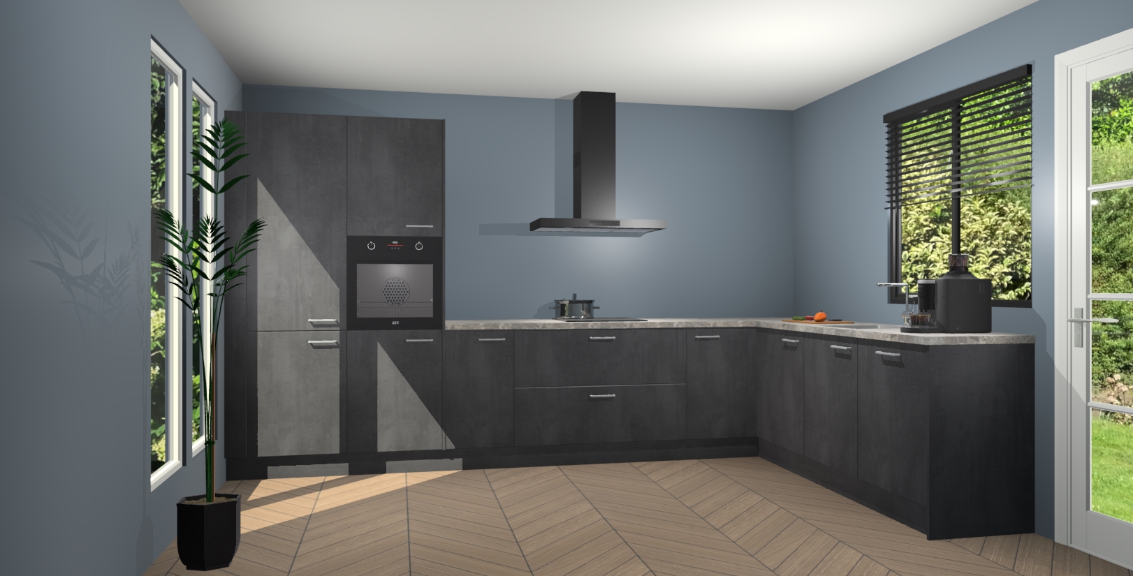 Wij presenteren de revolutie in keukens: de Beton Zwarte keuken Napels. Met modern design, een tijdloos uiterlijk en kasten die al voor gemonteerd worden geleverd, laat deze stijlvolle keuken uw kookervaring op een hele nieuwe manier transformeren.