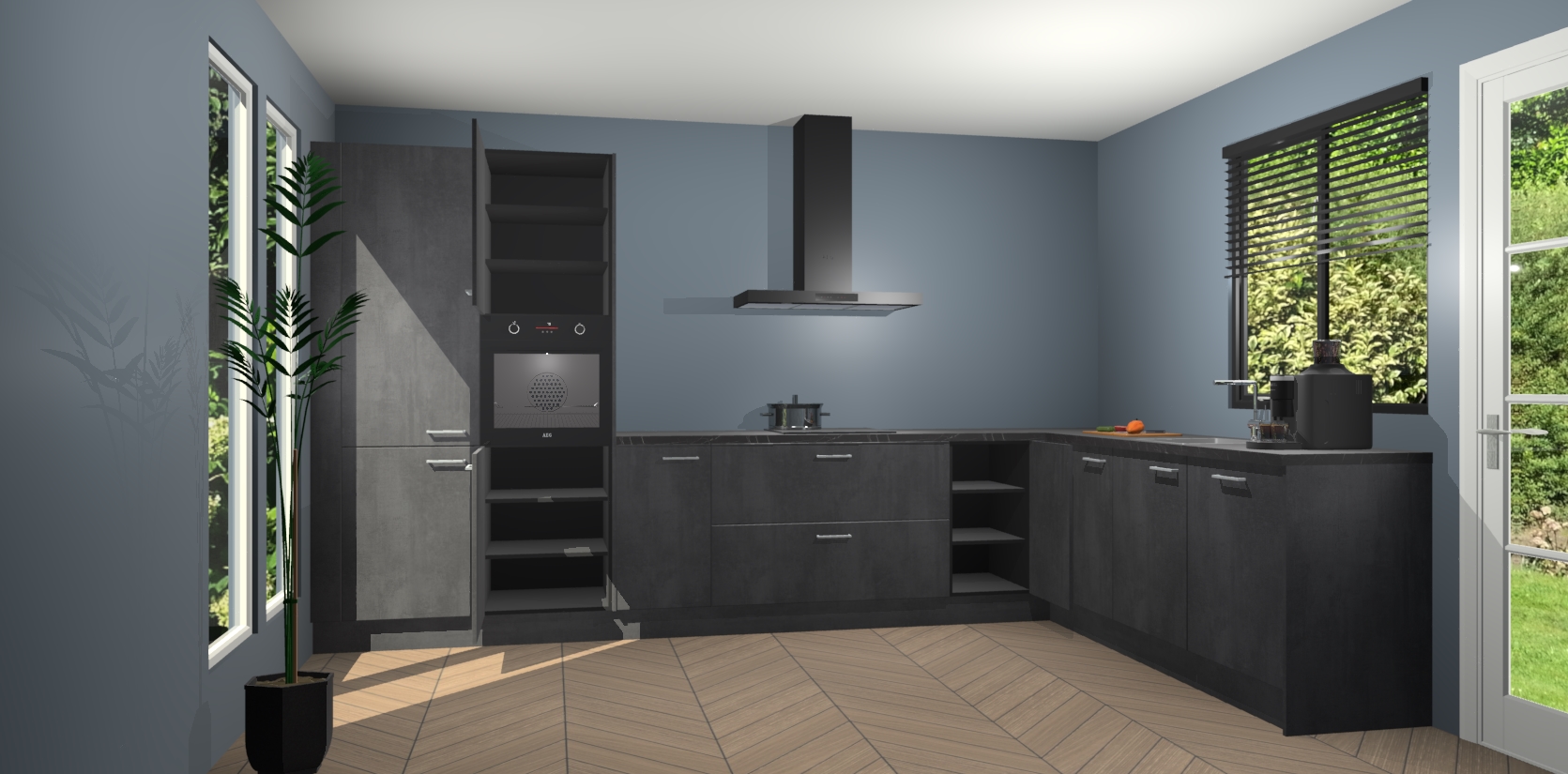 Wij presenteren de revolutie in keukens: de Beton Zwarte keuken Napels. Met modern design, een tijdloos uiterlijk en kasten die al voor gemonteerd worden geleverd, laat deze stijlvolle keuken uw kookervaring op een hele nieuwe manier transformeren.