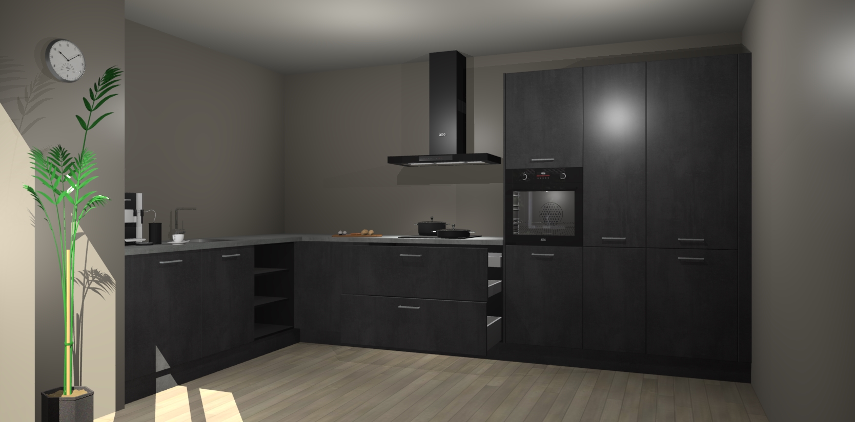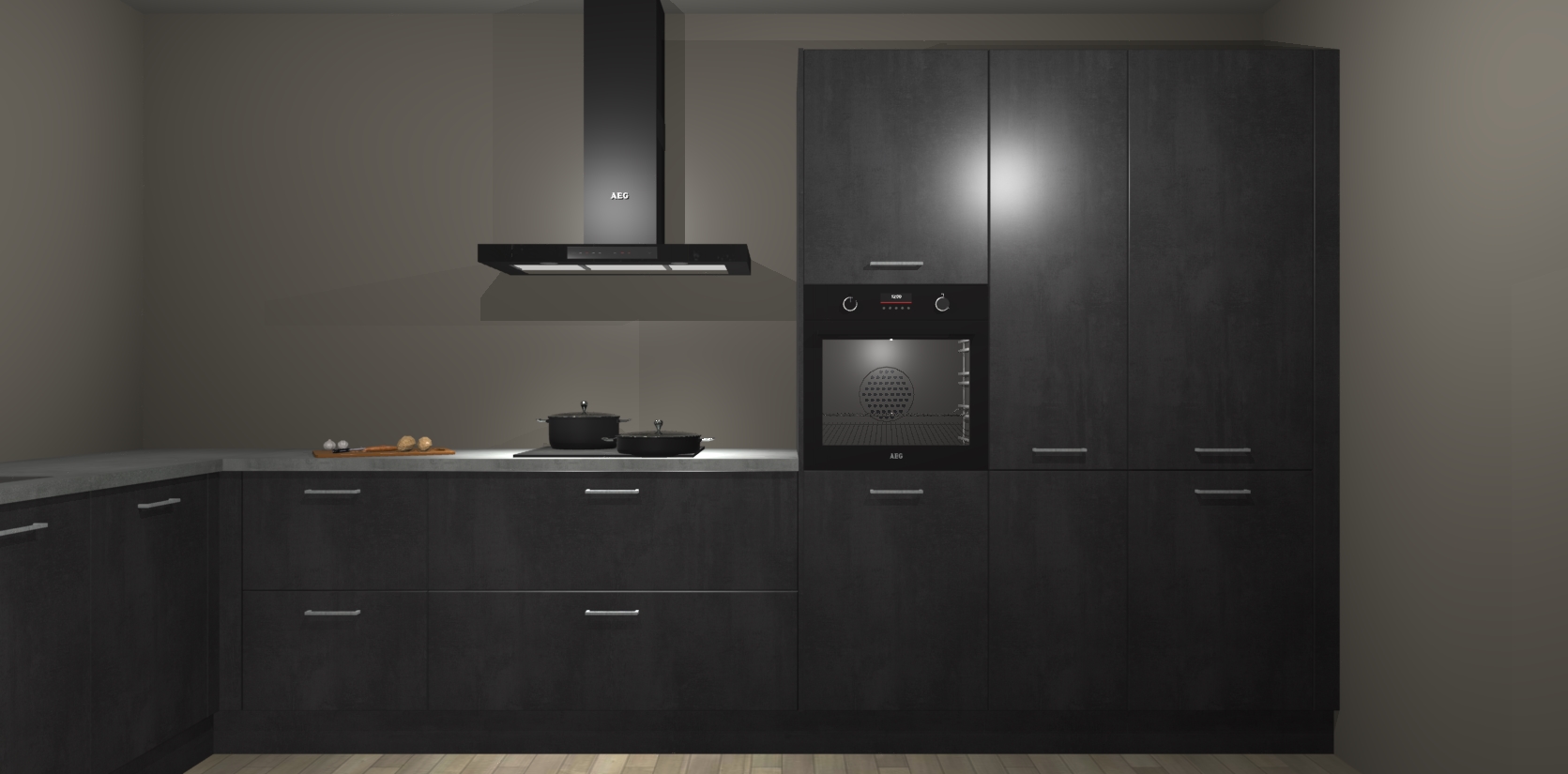 Welkom bij de beton zwarte keuken Nuuk. Deze prachtige keuken zal de komende jaren het middelpunt van de belangstelling in uw huis zijn. Uitgerust met vijf inbouwapparaten komt u nooit kookgereedschap tekort.