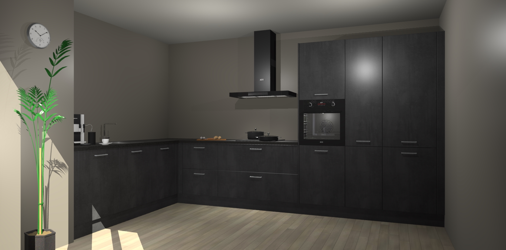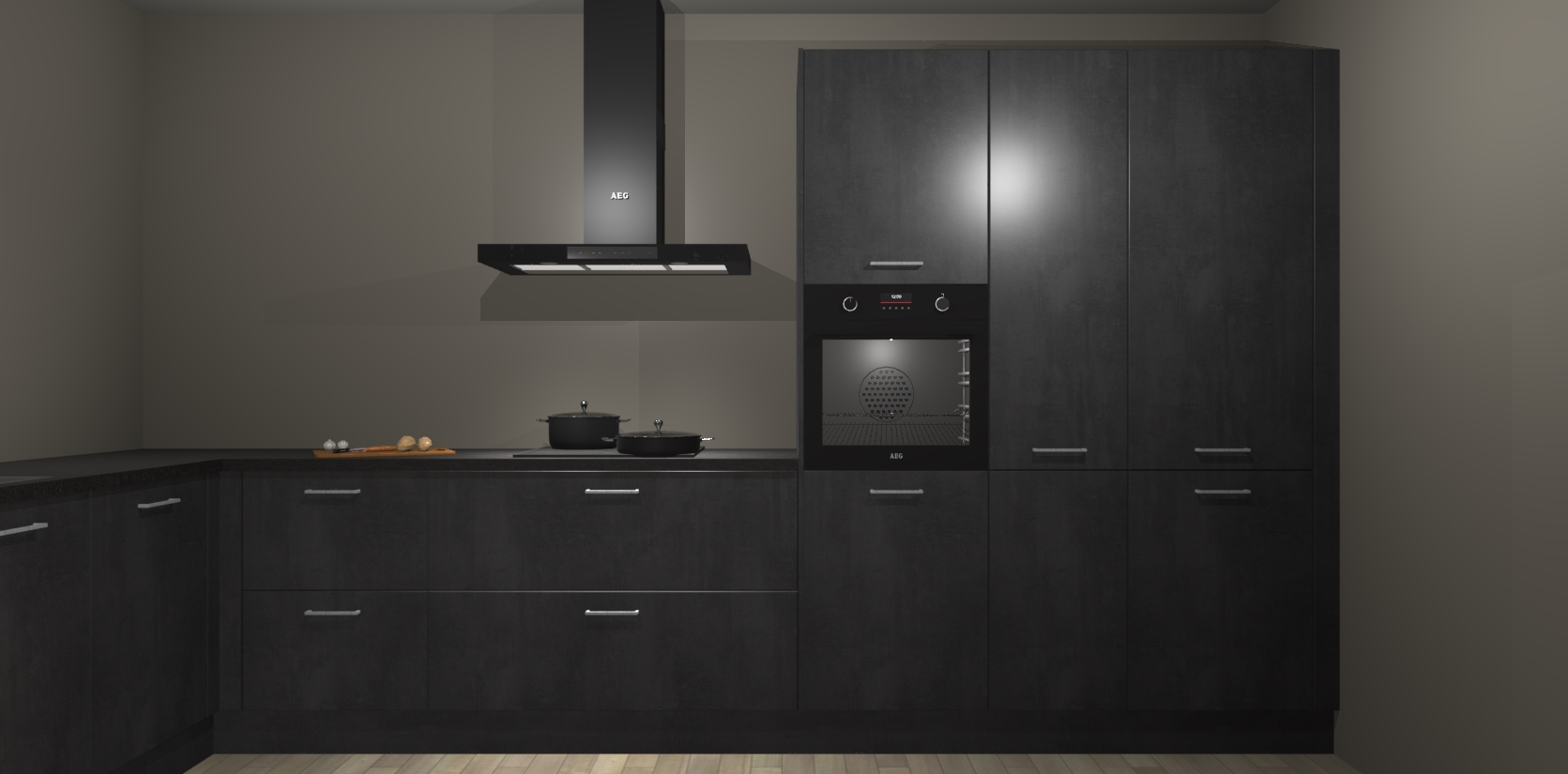Welkom bij de beton zwarte keuken Nuuk. Deze prachtige keuken zal de komende jaren het middelpunt van de belangstelling in uw huis zijn. Uitgerust met vijf inbouwapparaten komt u nooit kookgereedschap tekort.