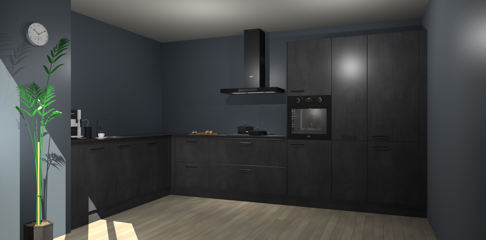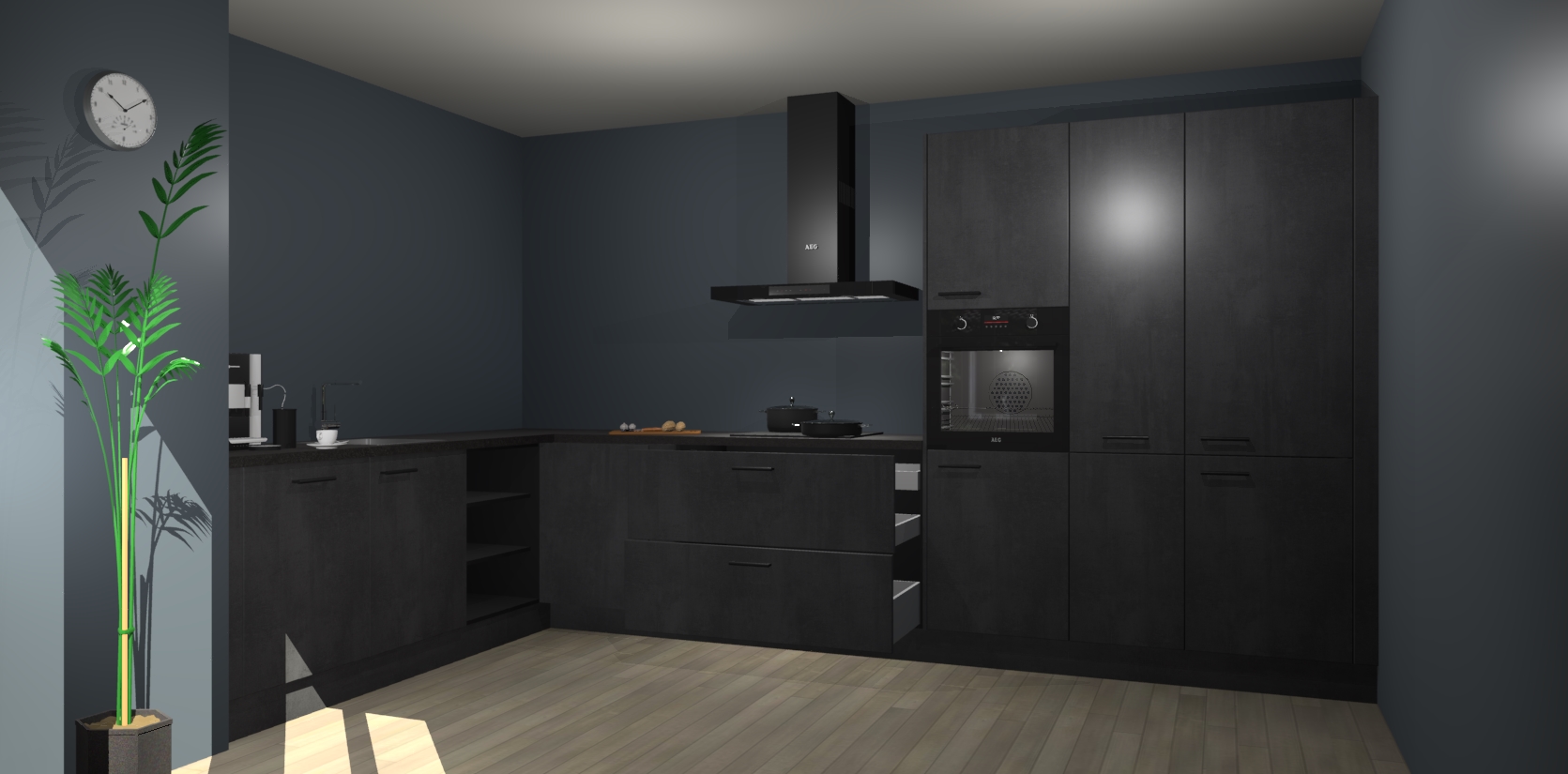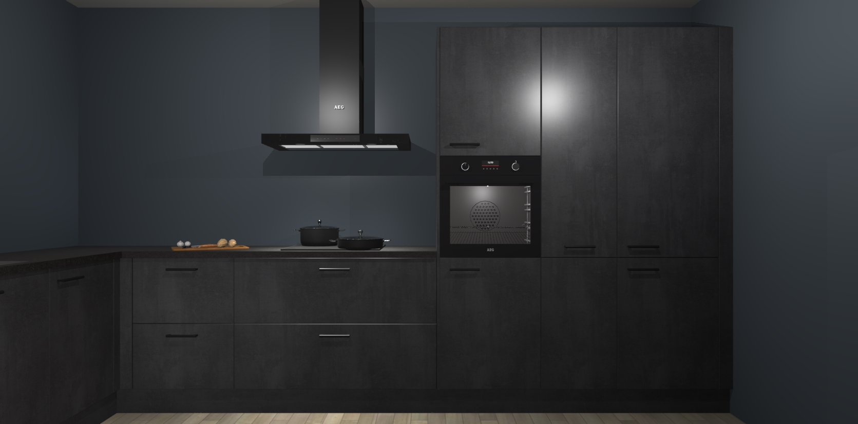Welkom bij de beton zwarte keuken Nuuk. Deze prachtige keuken zal de komende jaren het middelpunt van de belangstelling in uw huis zijn. Uitgerust met vijf inbouwapparaten komt u nooit kookgereedschap tekort.