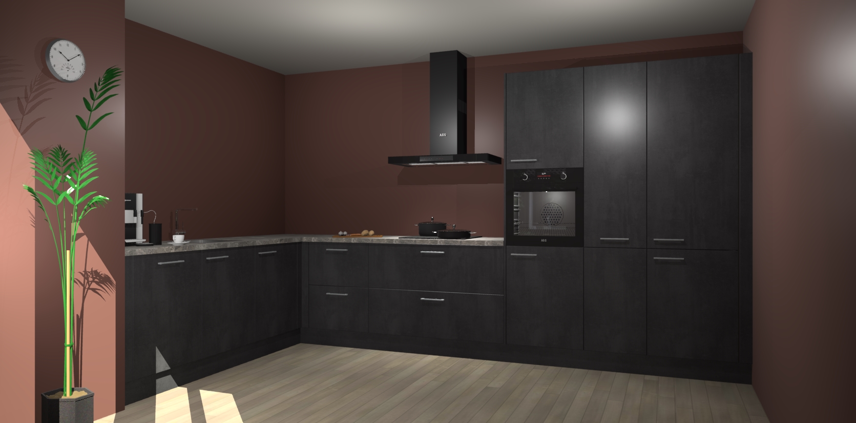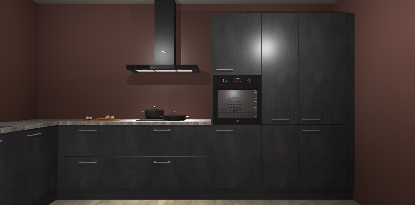 Welkom bij de beton zwarte keuken Nuuk. Deze prachtige keuken zal de komende jaren het middelpunt van de belangstelling in uw huis zijn. Uitgerust met vijf inbouwapparaten komt u nooit kookgereedschap tekort.