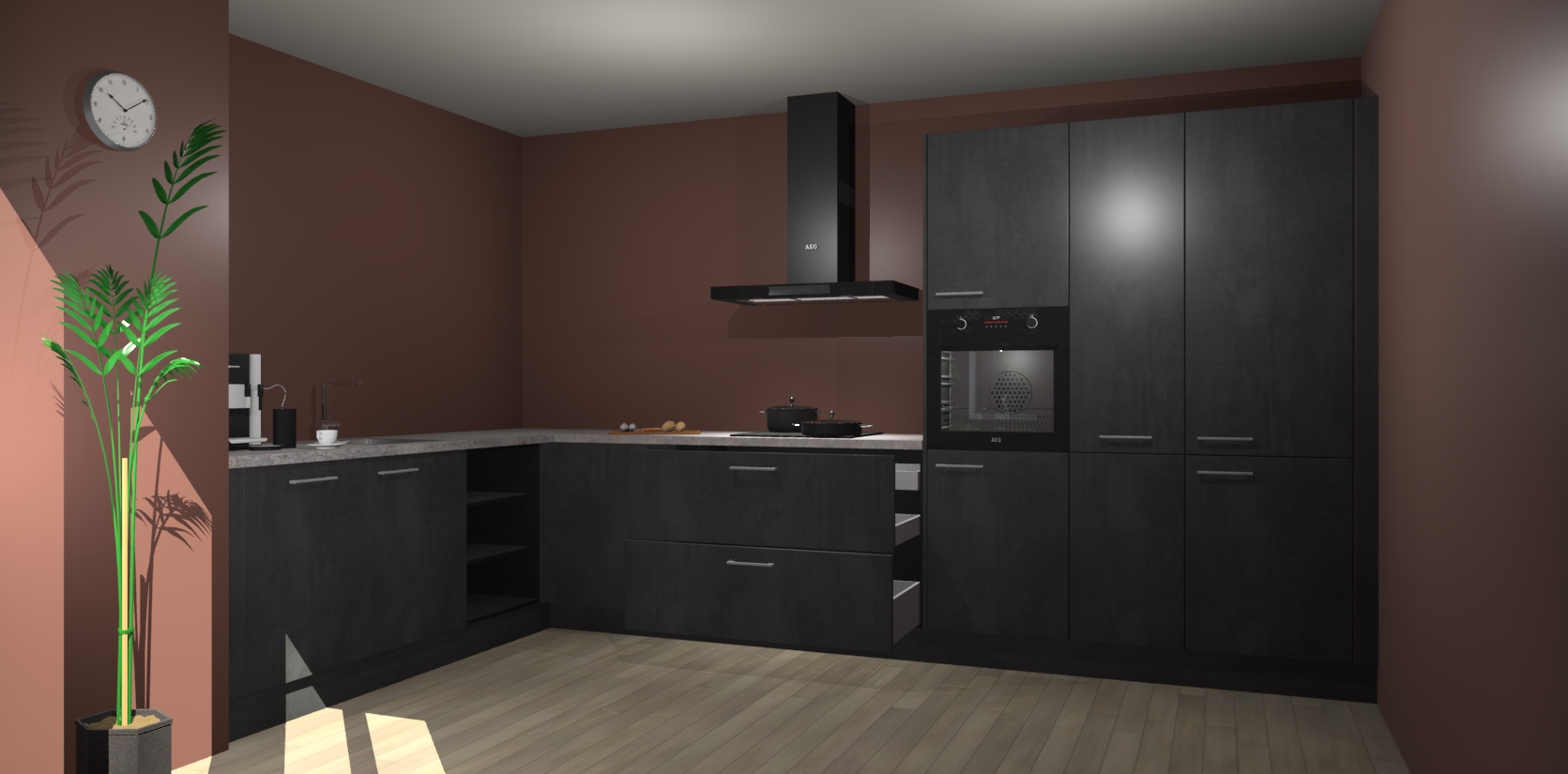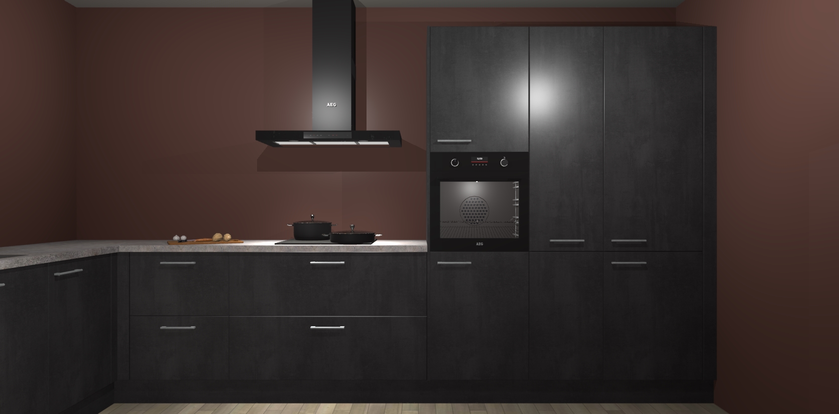 Welkom bij de beton zwarte keuken Nuuk. Deze prachtige keuken zal de komende jaren het middelpunt van de belangstelling in uw huis zijn. Uitgerust met vijf inbouwapparaten komt u nooit kookgereedschap tekort.