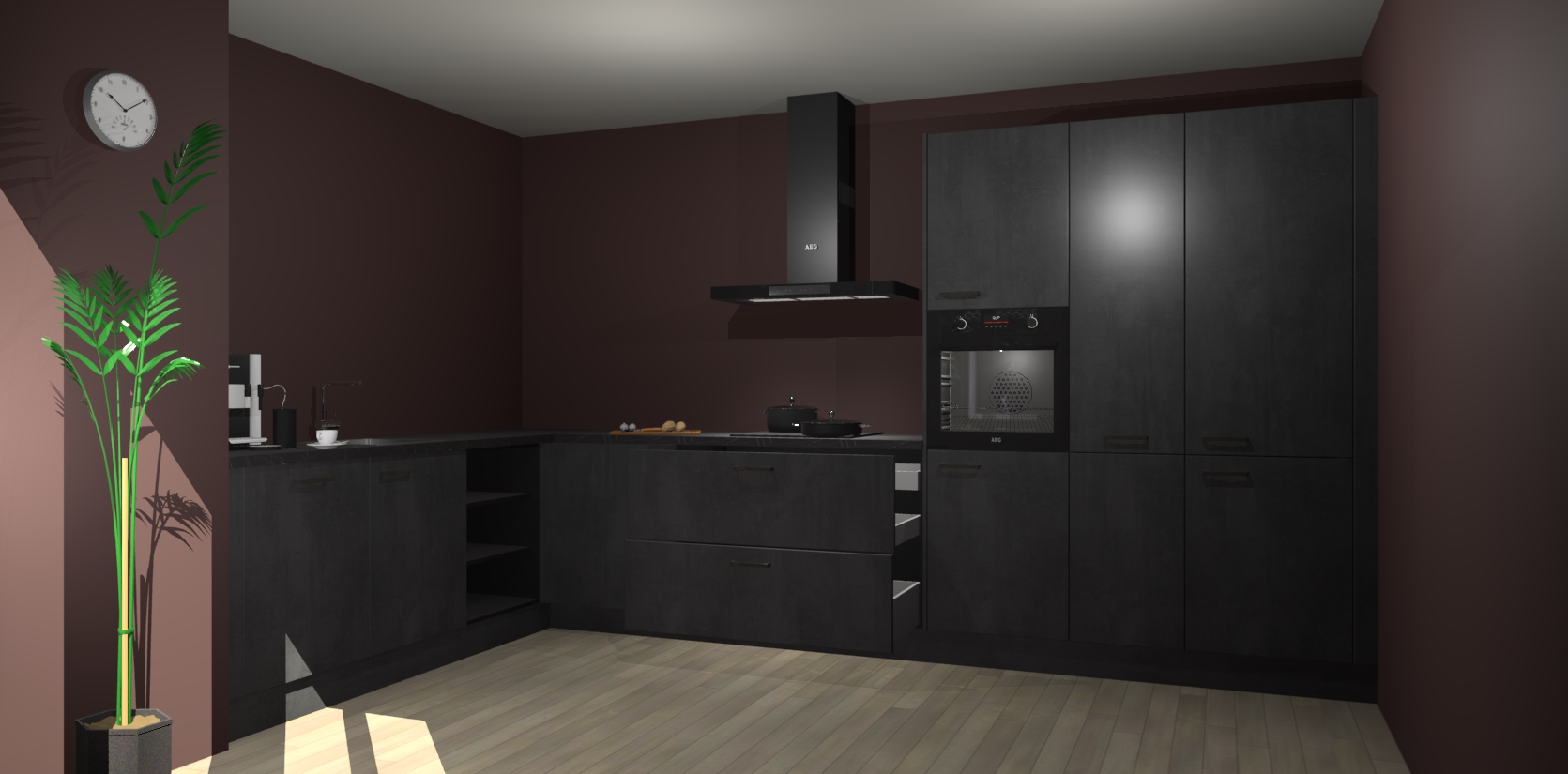Welkom bij de beton zwarte keuken Nuuk. Deze prachtige keuken zal de komende jaren het middelpunt van de belangstelling in uw huis zijn. Uitgerust met vijf inbouwapparaten komt u nooit kookgereedschap tekort.